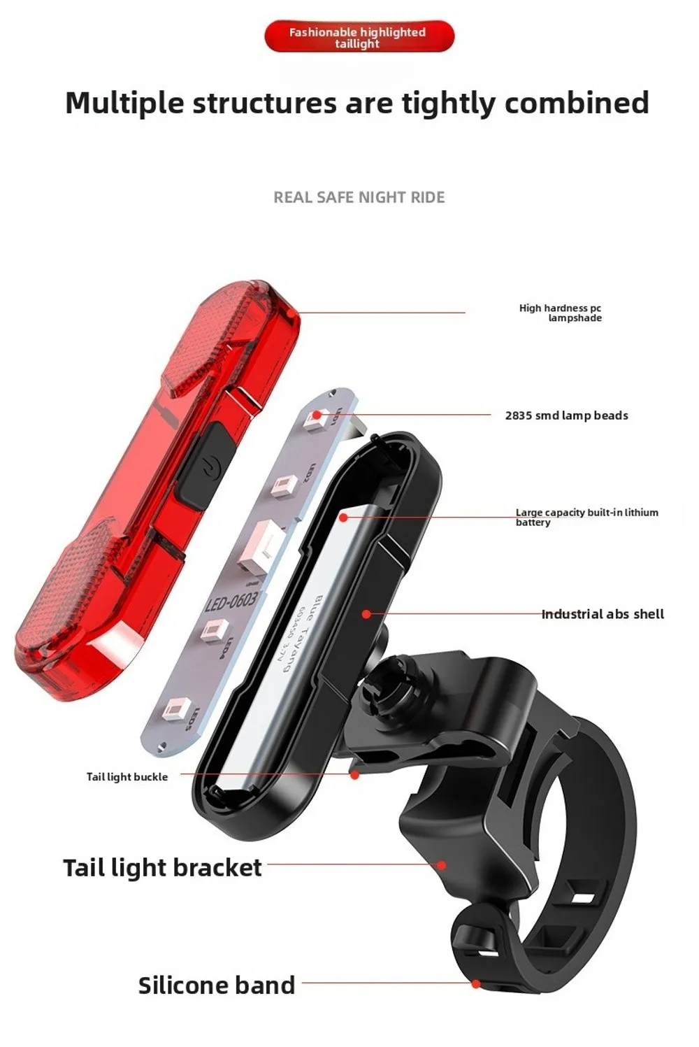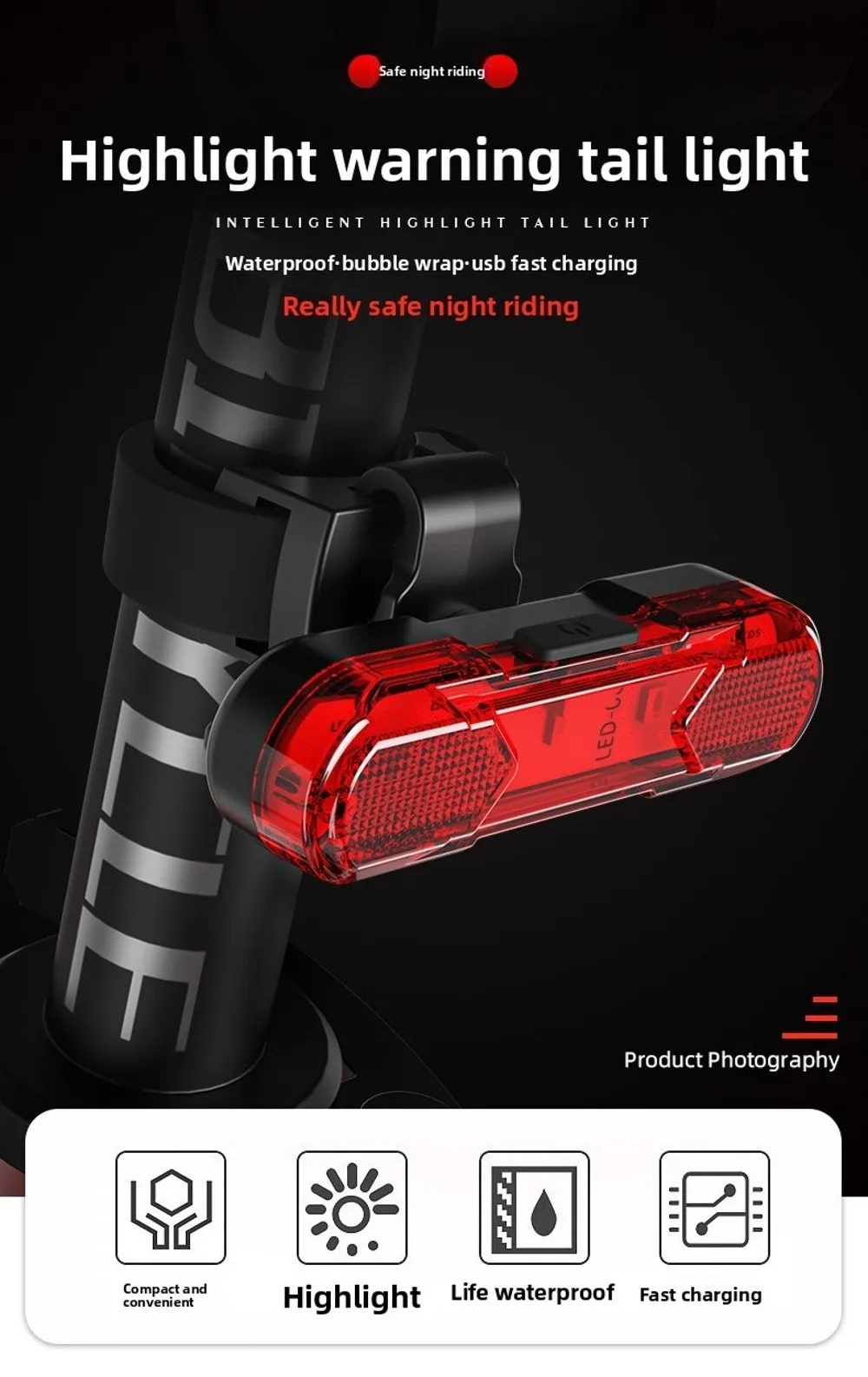 Waterproof and shockproof bike taillight.