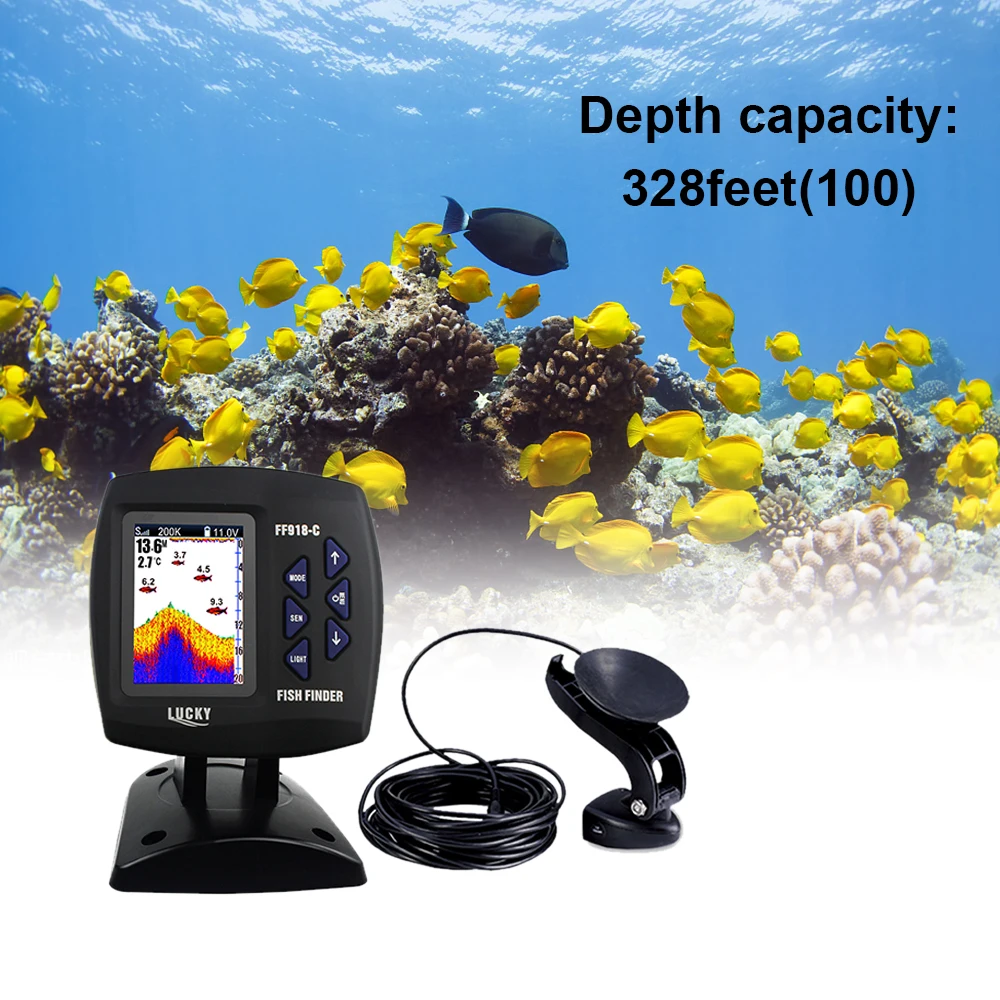 Este buscador de peces con cable con una gran pantalla a color de 3,5 pulgadas para ver cómodamente la finforma detectada por el transductor que tiene la capacidad de detectar la profundidad del agua de hasta 100 metros, ideal para pesca en océanos, lagos, ríos y paseos en bote.