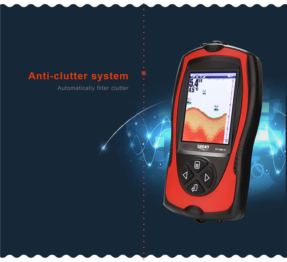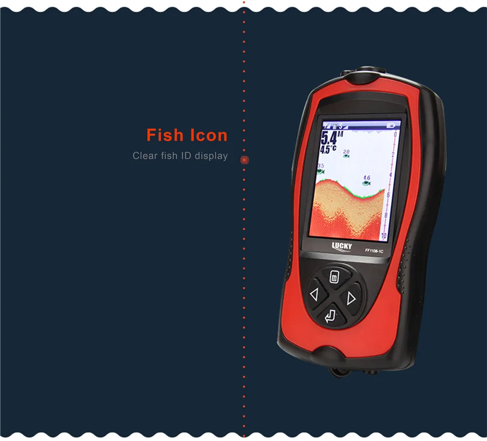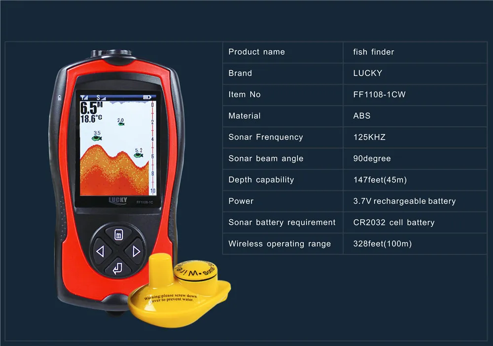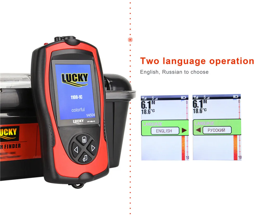 Lucky FF1108-1CW Portable Fish Finder Range 100M Depth 45M Wireless Sonar Depth Sounder Russian Menu Fish Finder Fishing