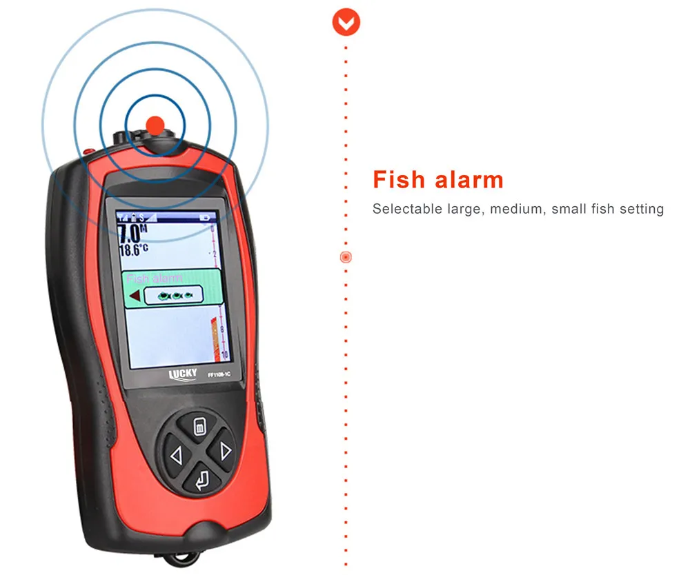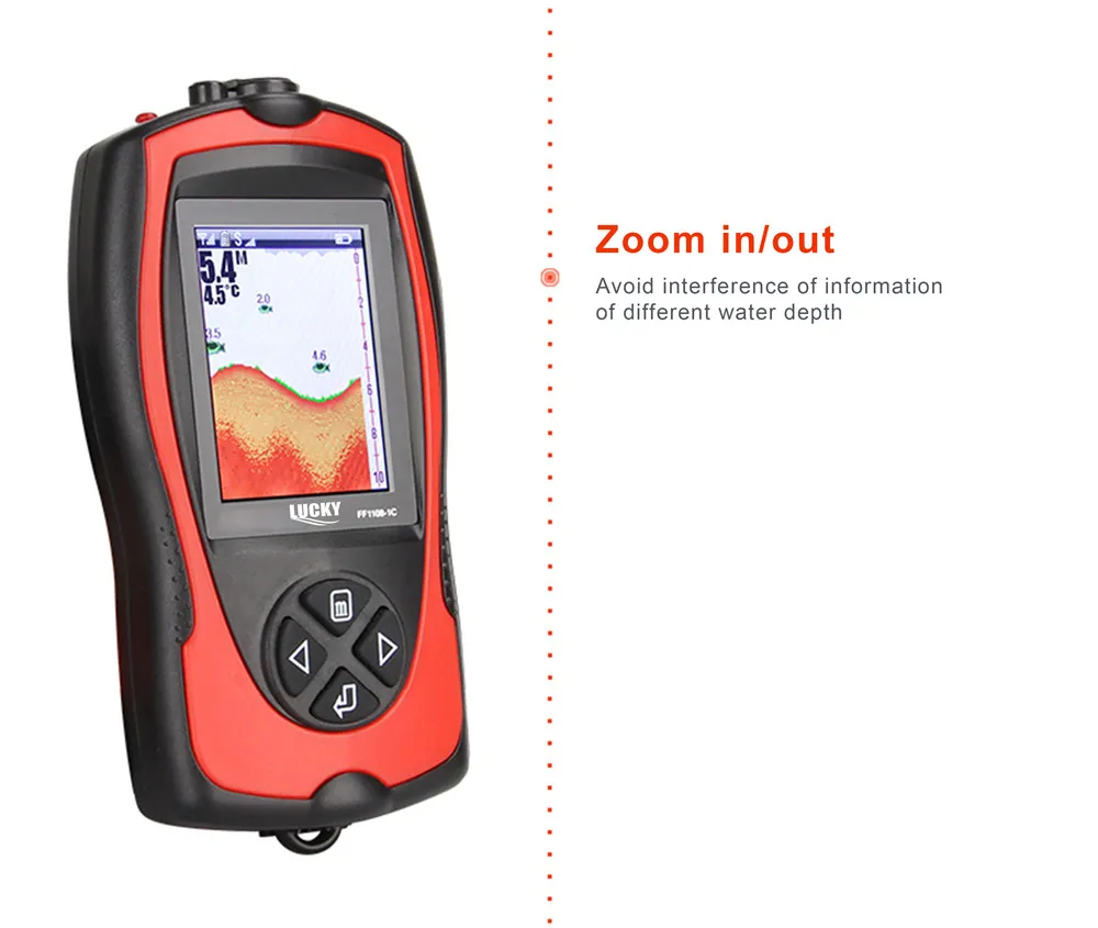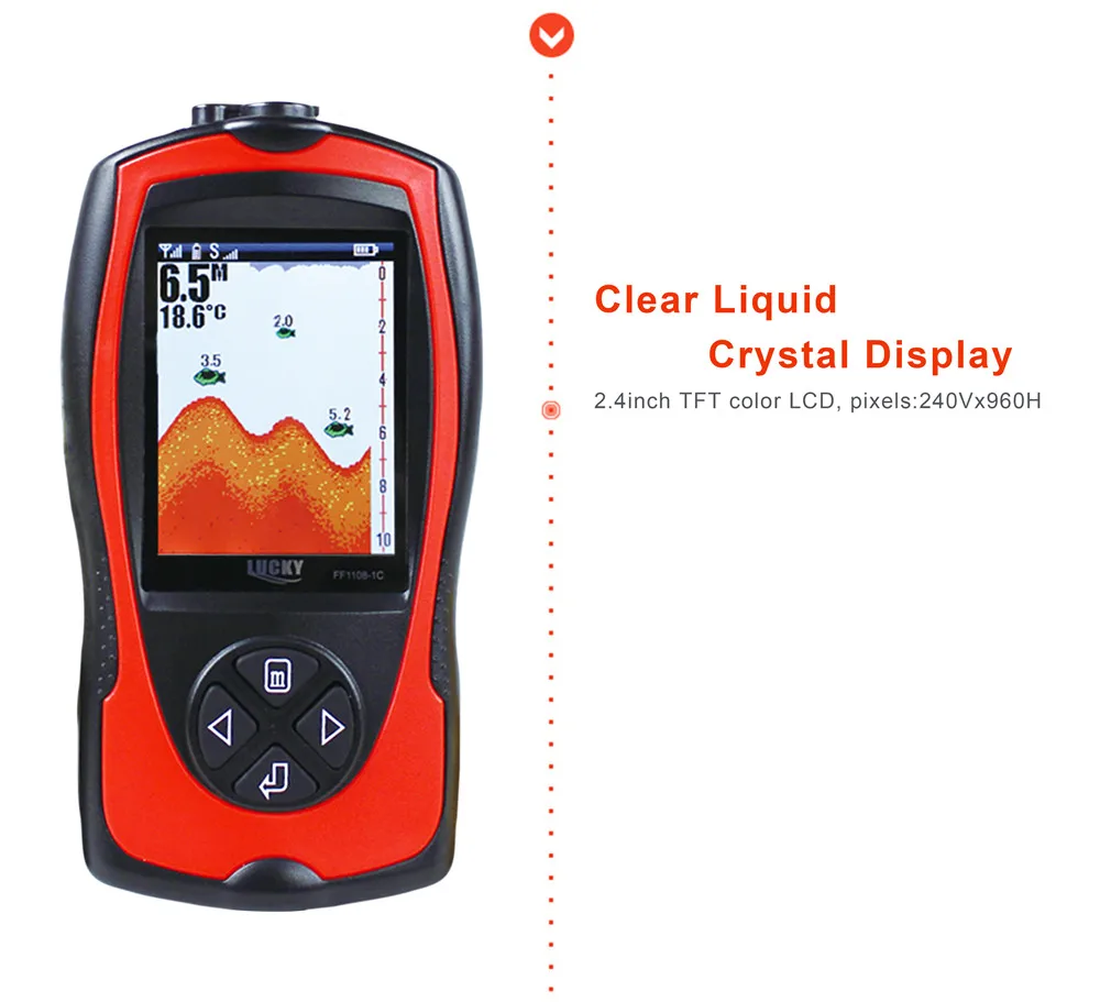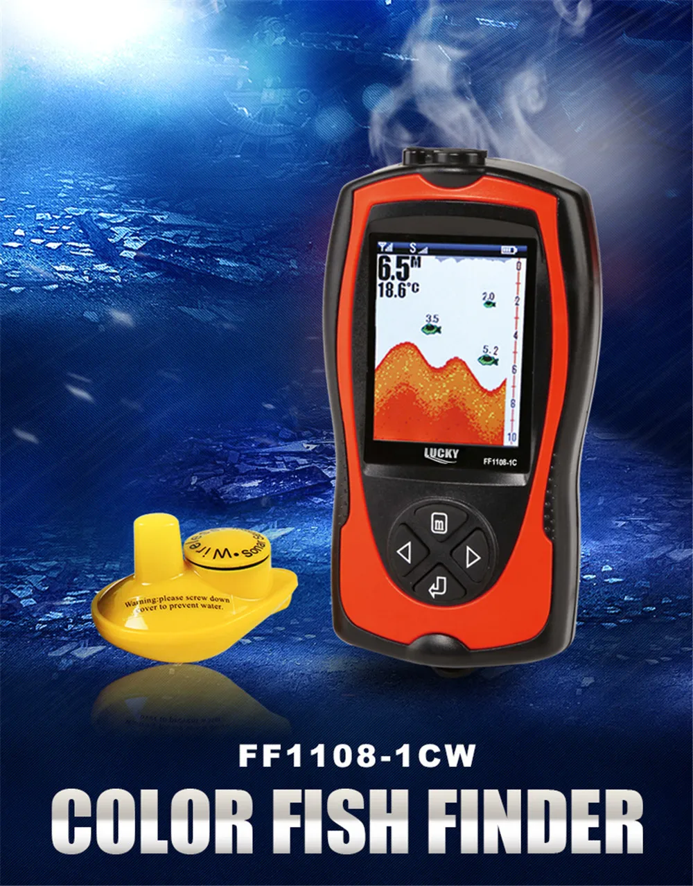 Lucky FF1108-1CW Portable Fish Finder Range 100M Depth 45M Wireless Sonar Depth Sounder Russian Menu Fish Finder Fishing