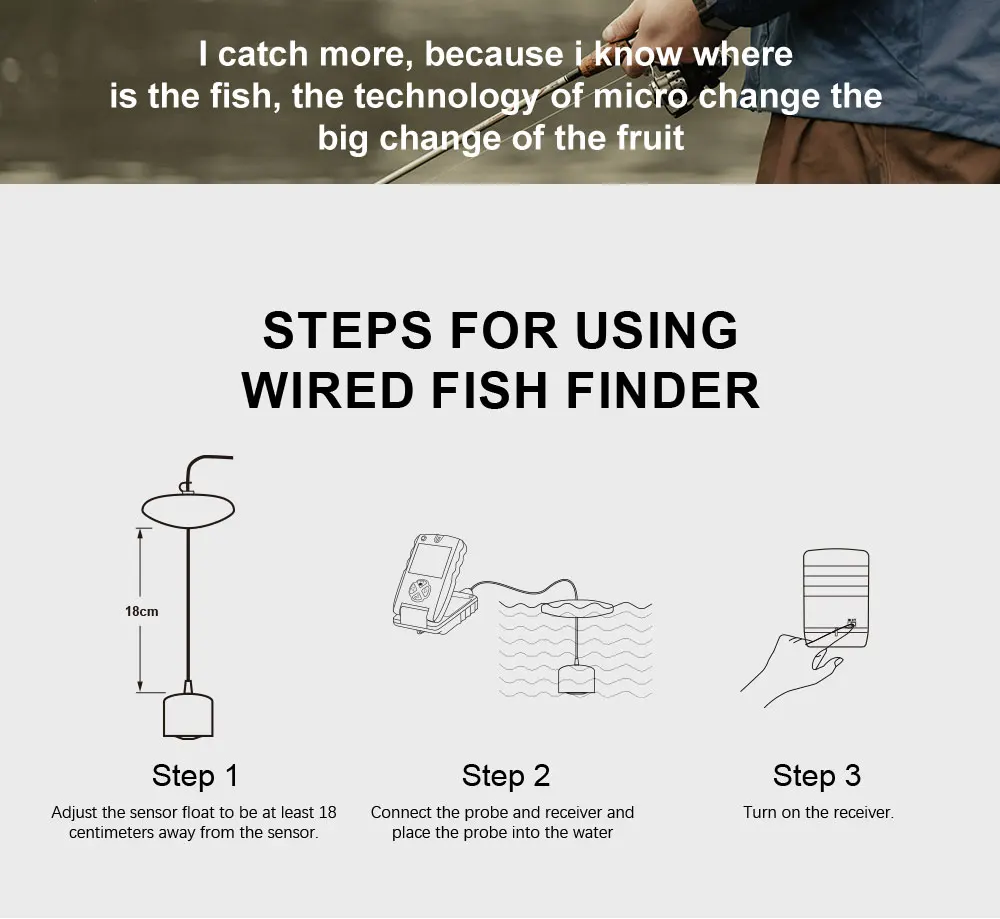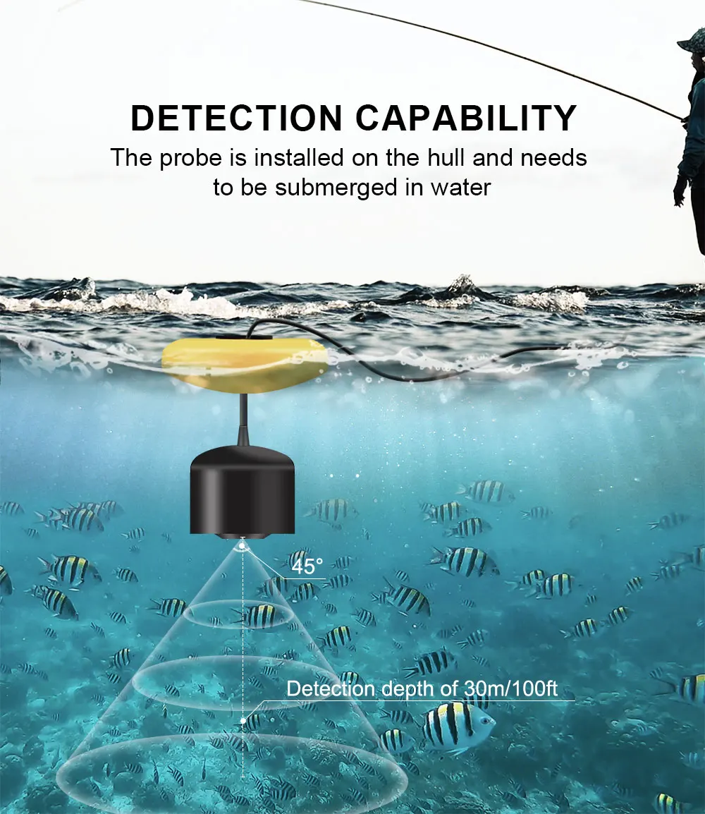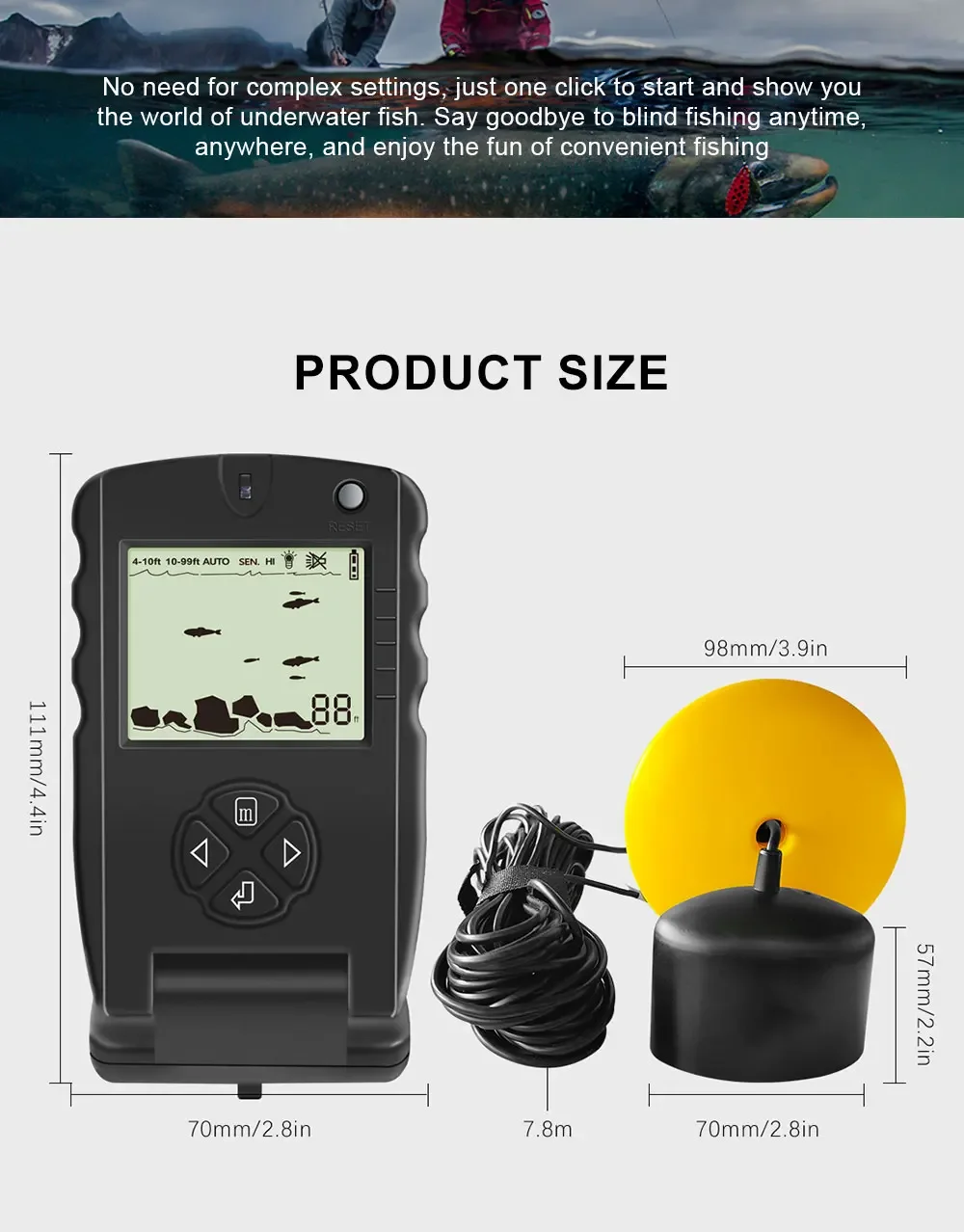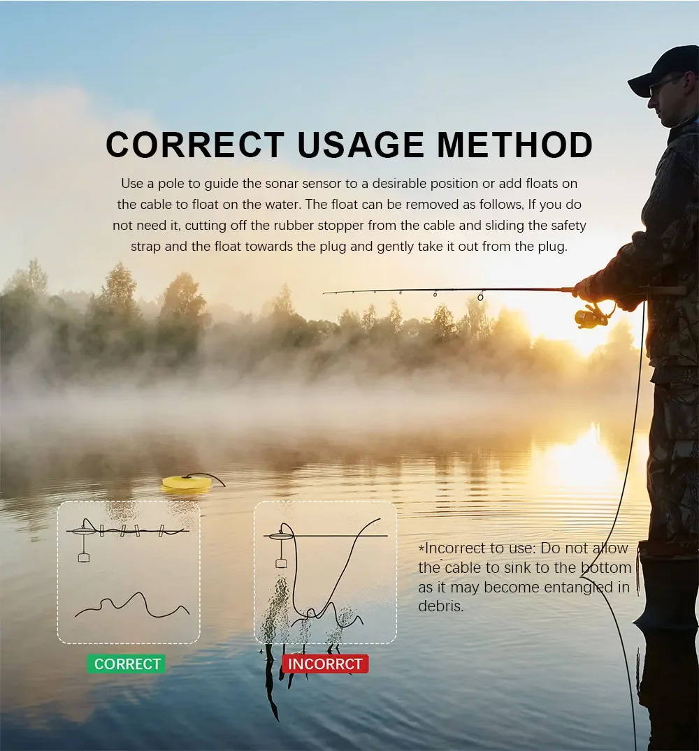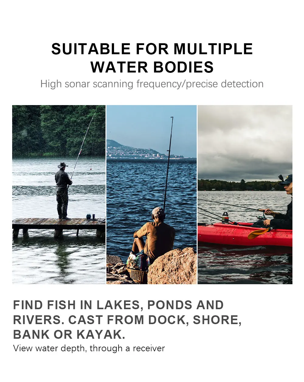 7.Encuentra peces en lagos, estanques y ríos.Fundido desde muelle, orilla, banco o kayak.Ver la profundidad del agua, a través de un receptor.