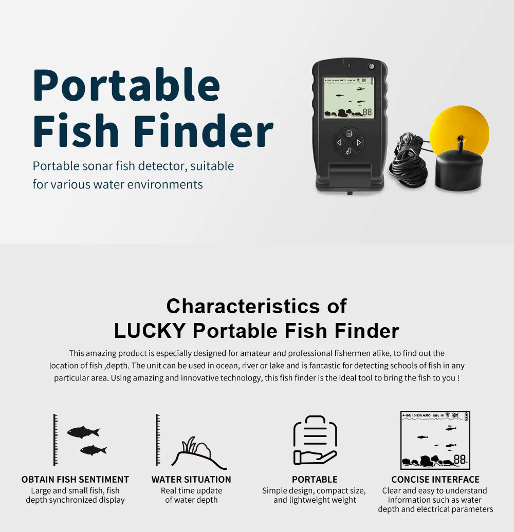 LUCKY FF717 buscador de peces portátil 147 pies de profundidad 45 grados sonar transductor pesca en hielo pesca ecosonda para pesca en mar/barco