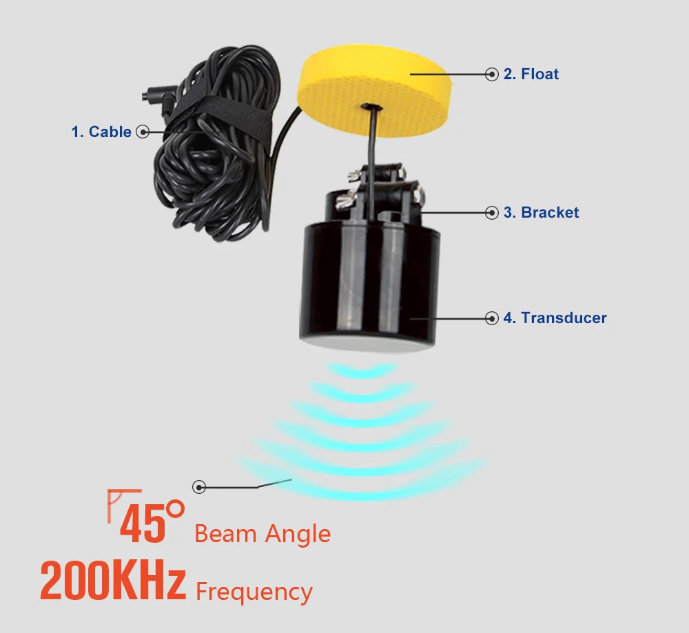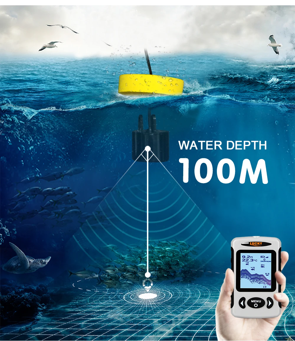3) Capacidad de profundidad: transductor de cable 328 pies (100m)