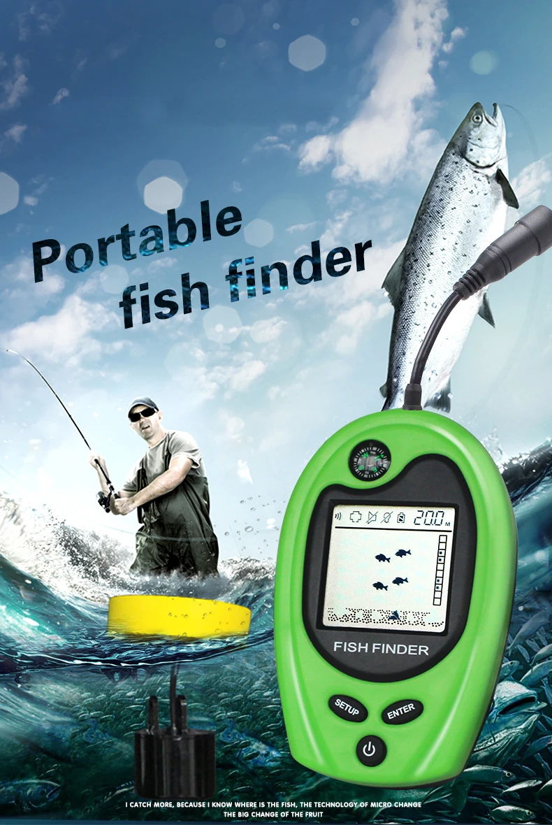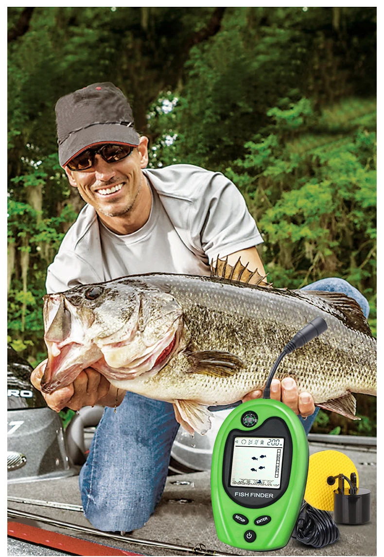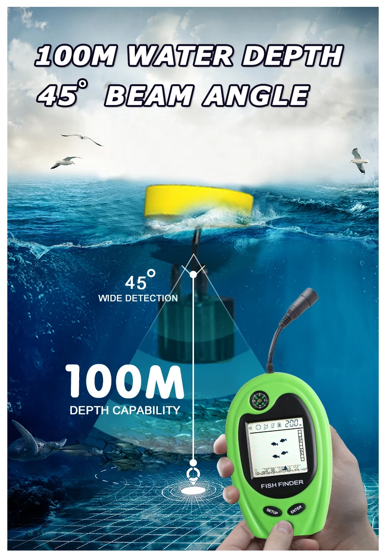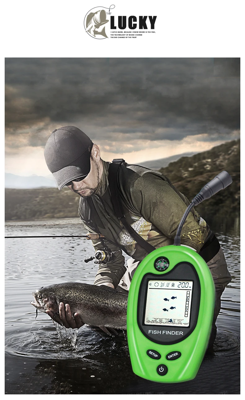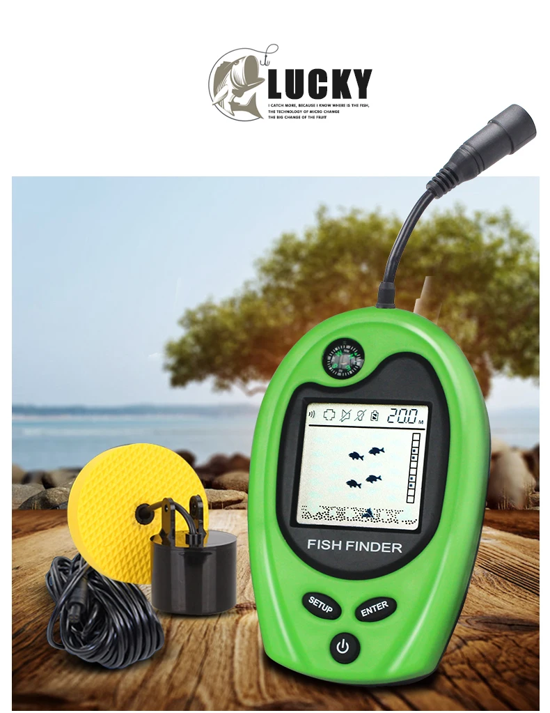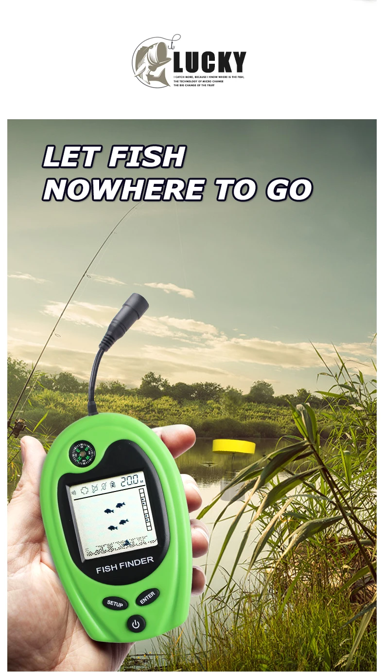 LUCKY FF818, detector de peces portátil con cable, alarma, buscador de peces, sonda de eco de pesca de 100m, aletas de peces portátiles con brújula