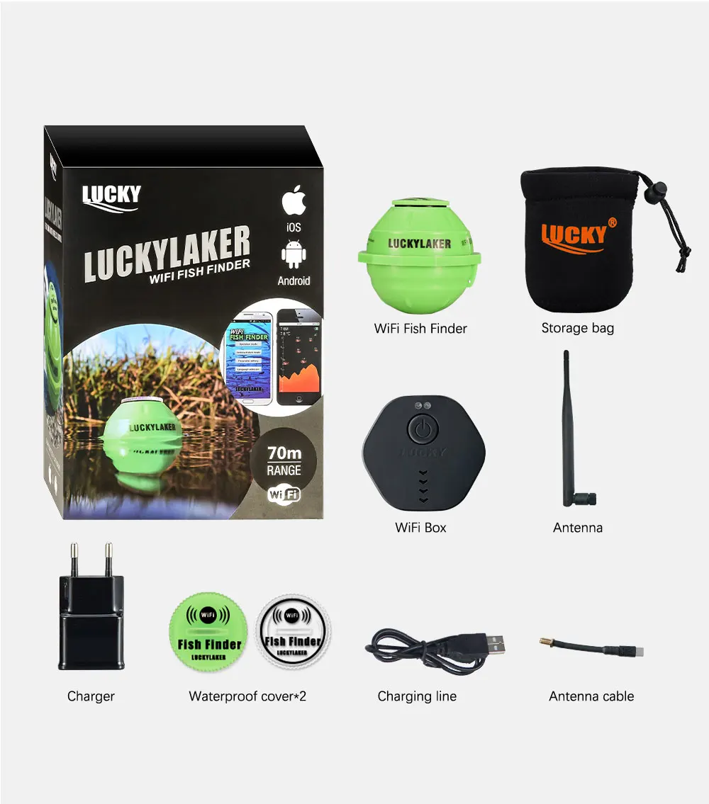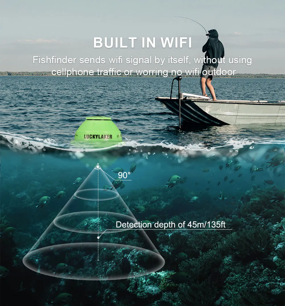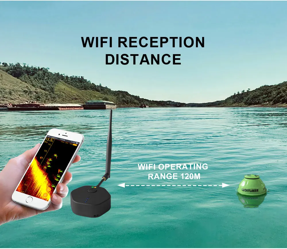LUCKY FF916 WiFi Fish Finder Edición mejorada 120M de distancia 45M de profundidad Pesca inalámbrica Adecuado para iOS y Android Fish Finder
