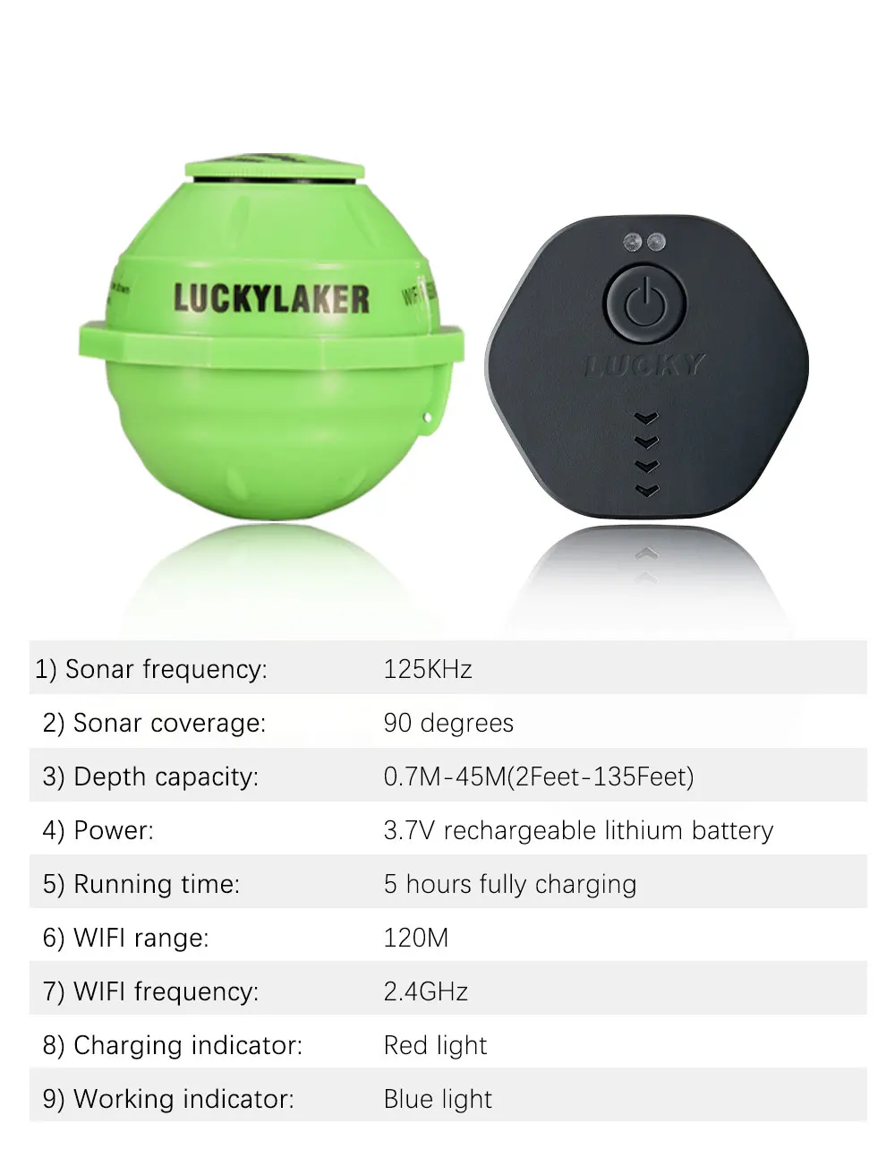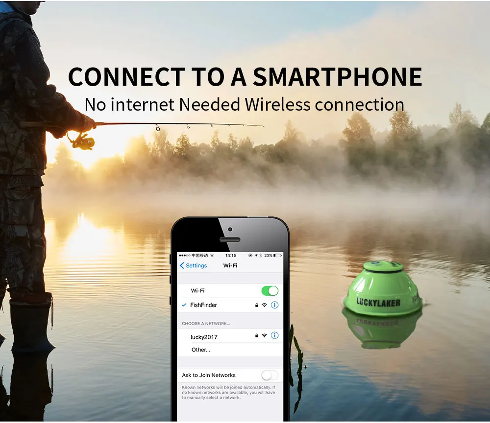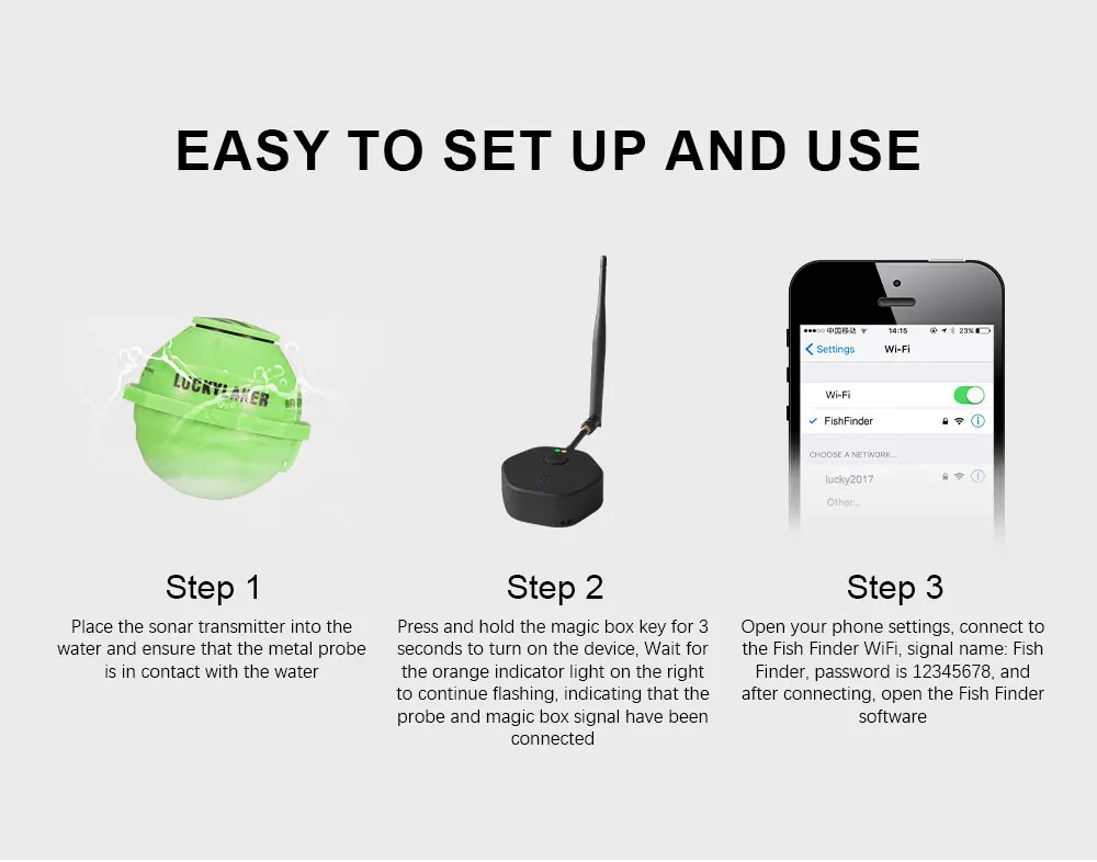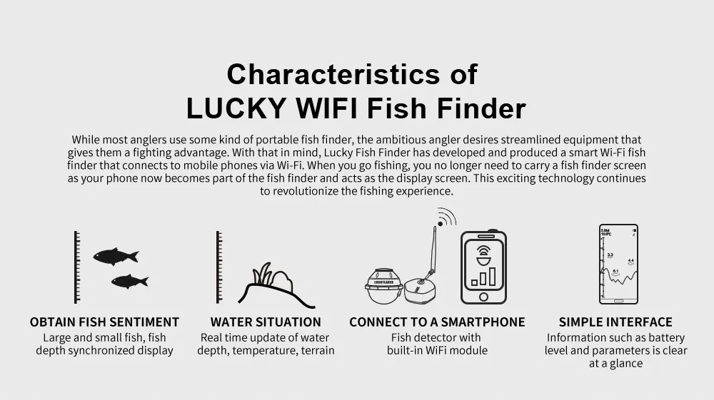 LUCKY FF916 WiFi Fish Finder Edición mejorada 120M de distancia 45M de profundidad Pesca inalámbrica Adecuado para iOS y Android Fish Finder