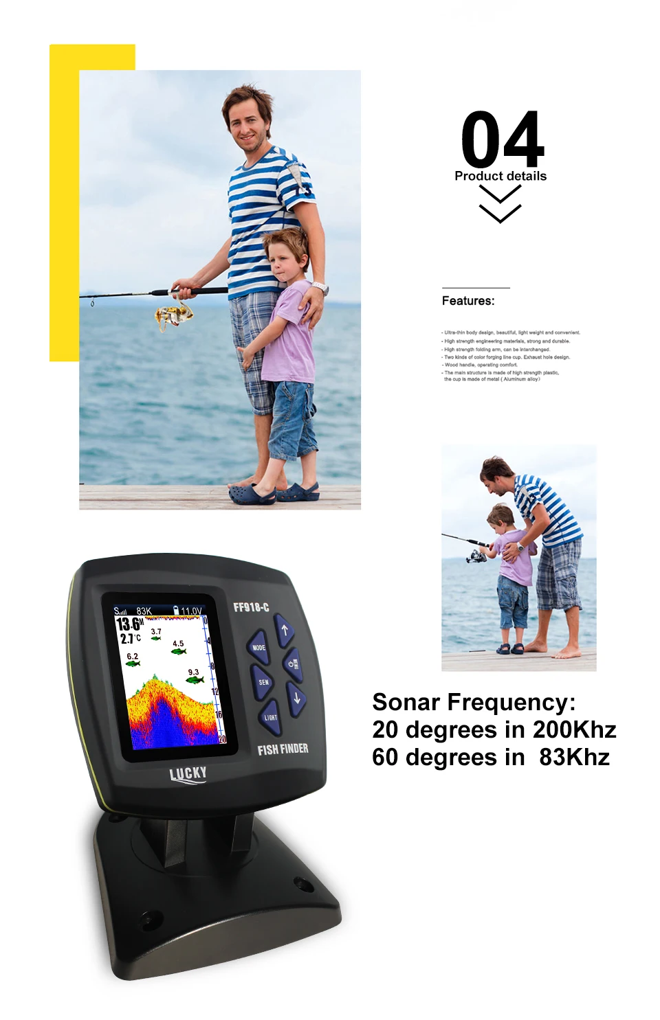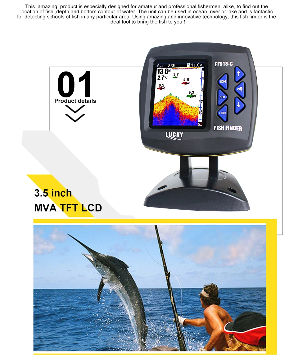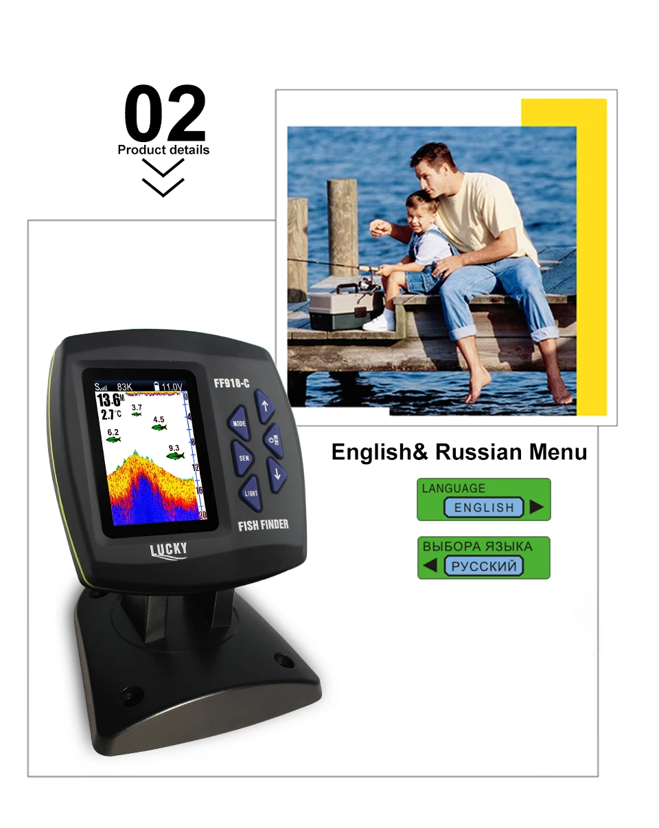 LUCKY-Buscador de peces de eco de doble frecuencia, 328 pies/100m, buscador de peces con sensor de cable, cámara de pesca submarina, Monitor LCD