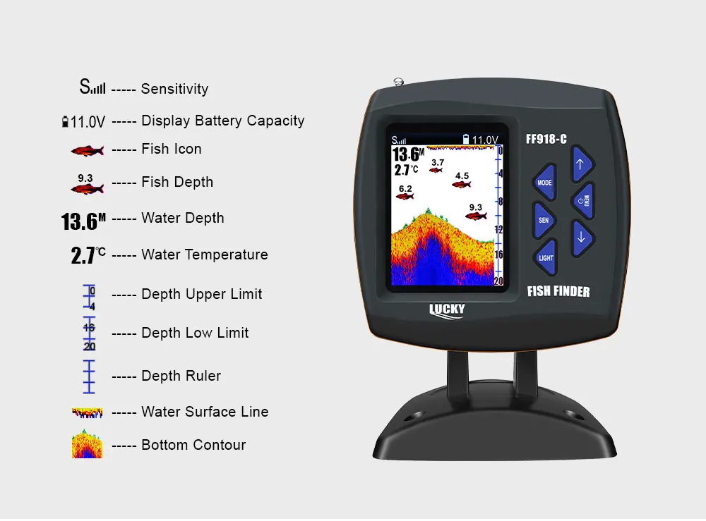 5) La profundidad del agua, la temperatura del agua, la ubicación del pez, el contorno del fondo se pueden obtener constantemente del agua