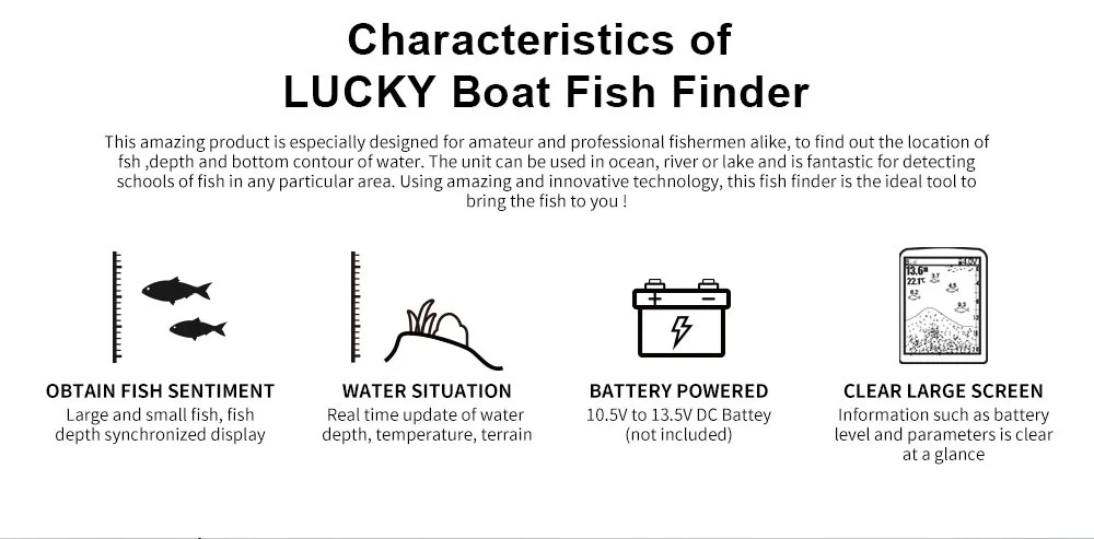 La descripción es deficiente, el video publicitario del producto es engañoso, parece que estás comprando un conjunto completo de buscador de peces con barco de pesca, mostrando cómo se instalan.