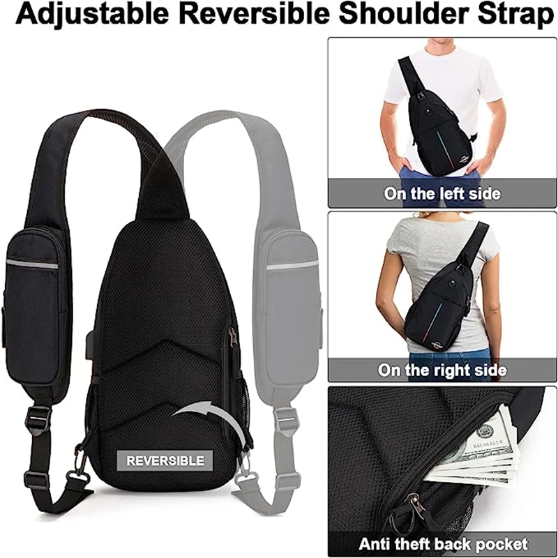 Crossbody Sling Mochila Sling Bag Viajes Senderismo Pecho Bolsa Daypack