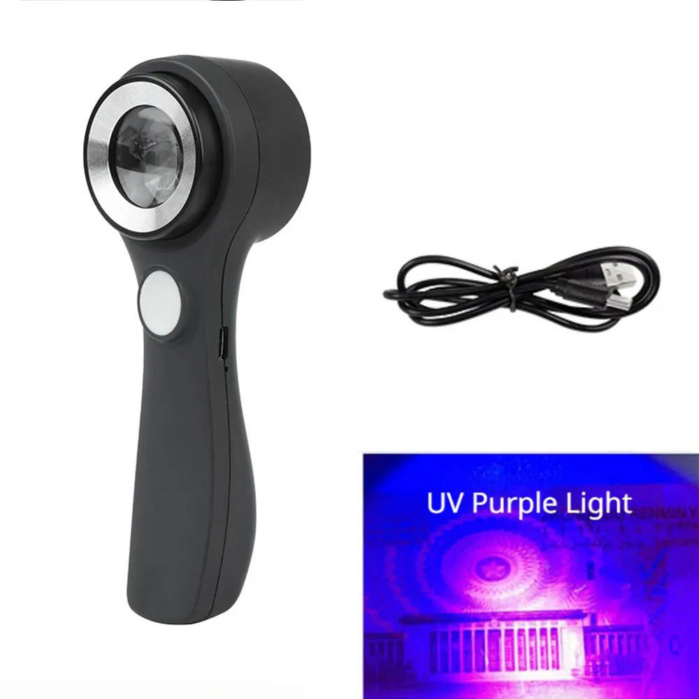 Lupa iluminada con luz LED recargable, lupa de mano con luz Uv de 60X para leer monedas y joyas