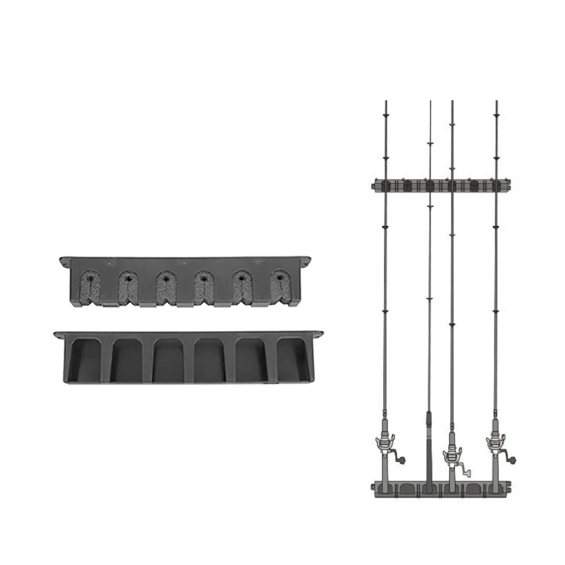 El pedalier está hecho de ABS liviano, compacto y conveniente, para evitar que la caña de pescar se deslice.¡La caña de pescar está diseñada para 6 juegos, adecuada para colección familiar y exhibición en tiendas!