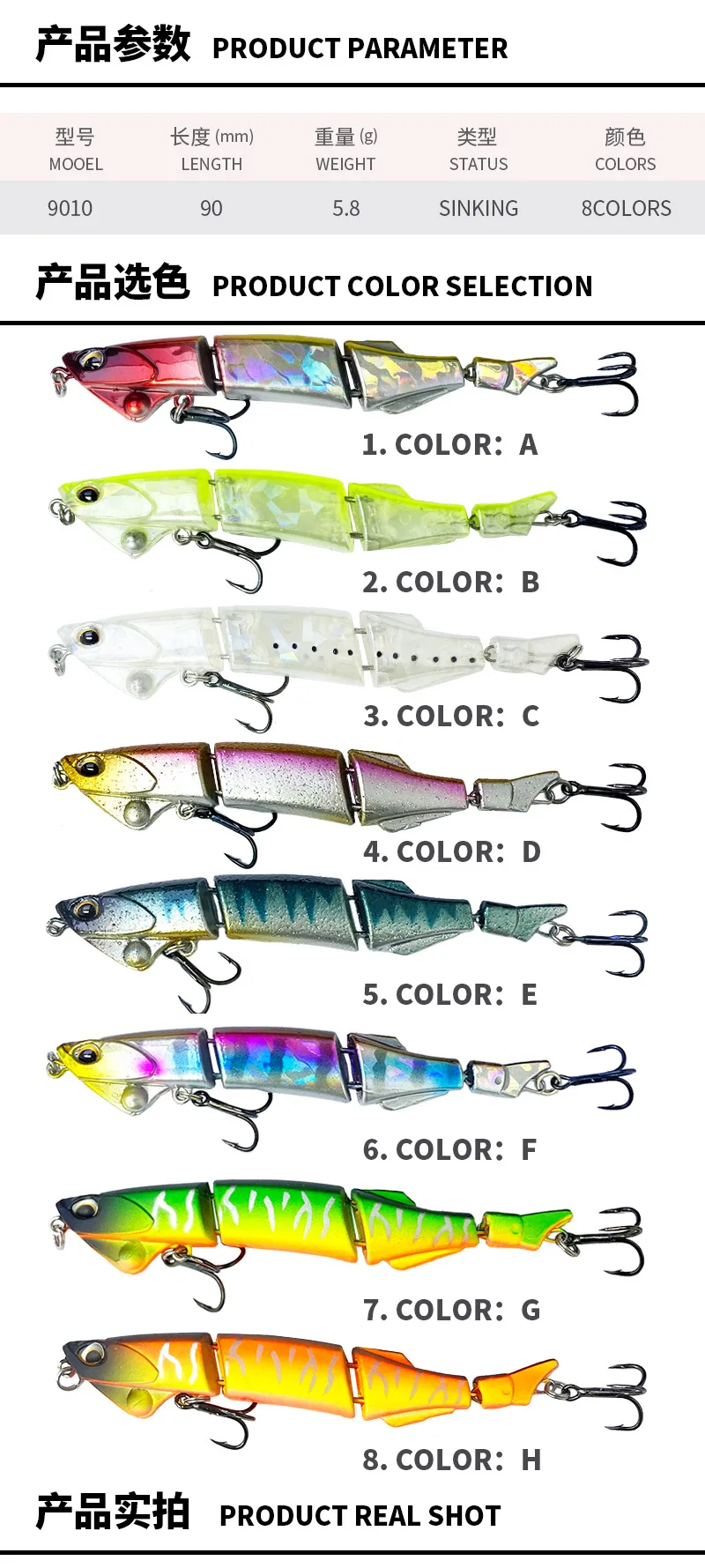 LureBait-cebo duro de simulación de pececillo de pescado de varias secciones, Popular, de largo alcance, 9cm, 6g, cebo falso, equipo de pesca