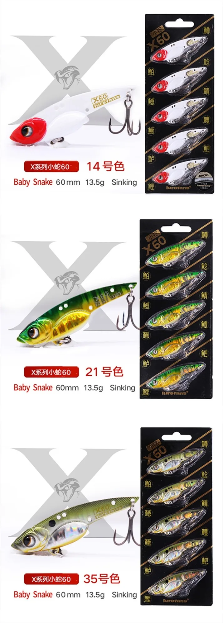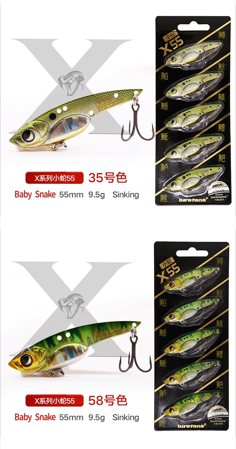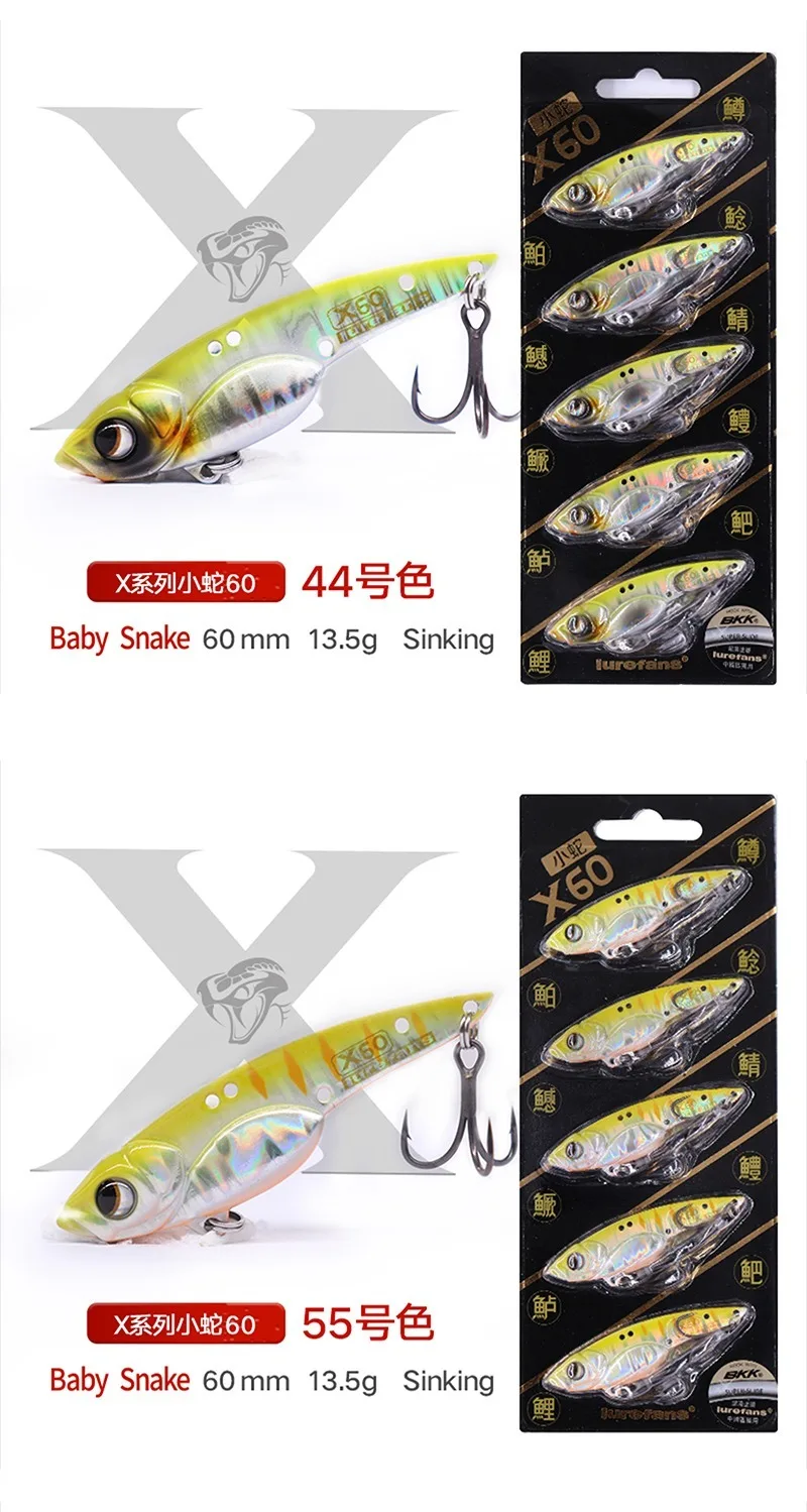 Lurefans-señuelo de pesca Artificial, de 5 piezas señuelo/placa Baby Snake X50/X55/X60 que se hunde, VIB, 7,5/9,5/13,5g, Wobbler para Bass Perch, cebo falso