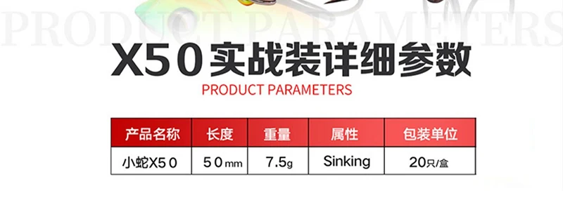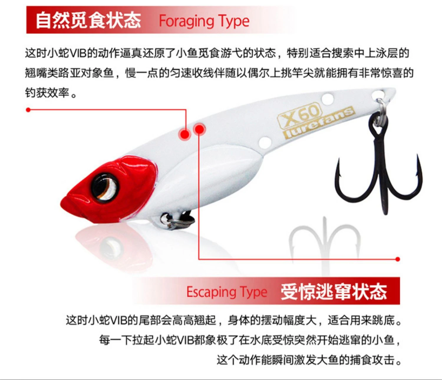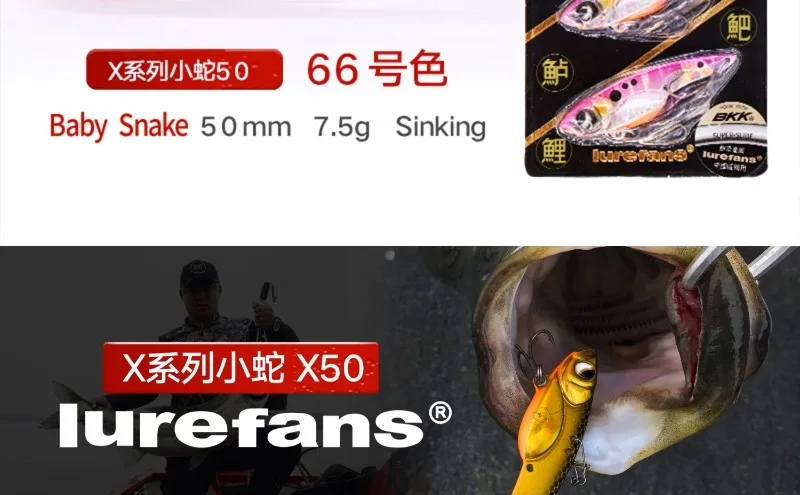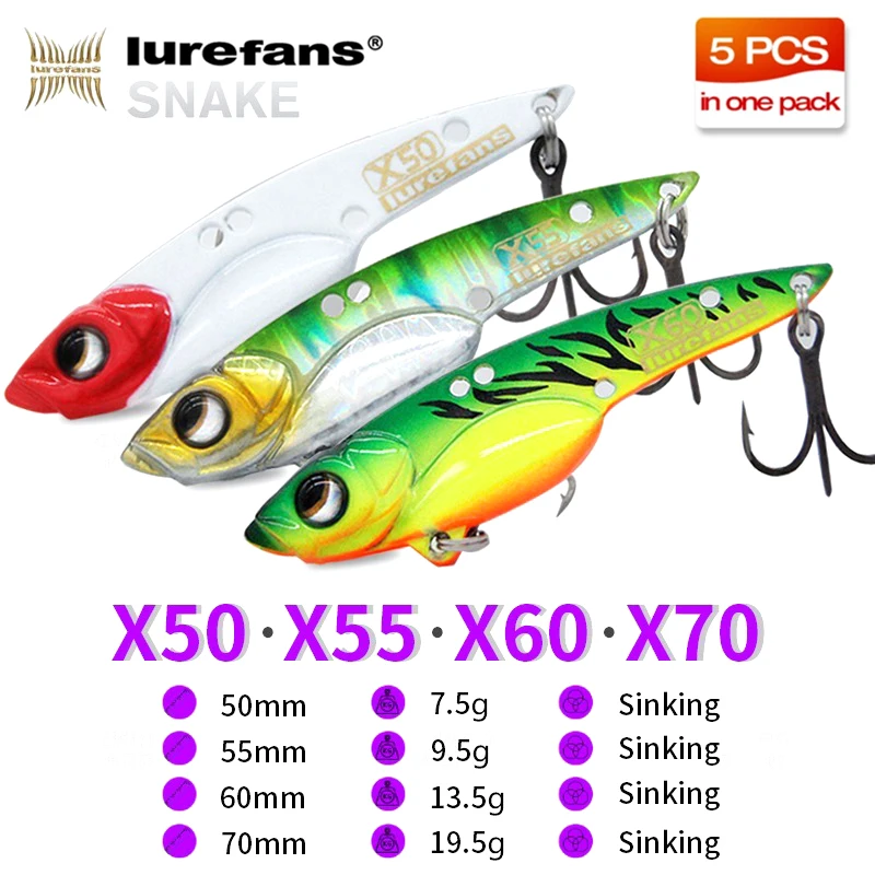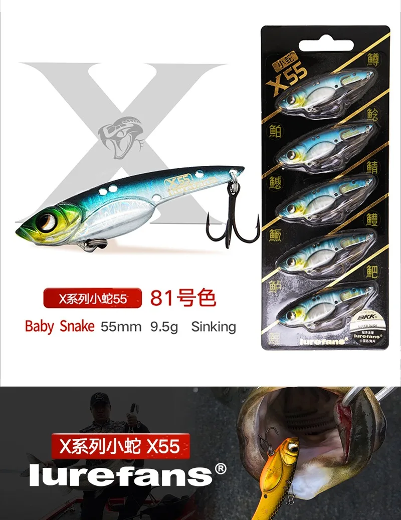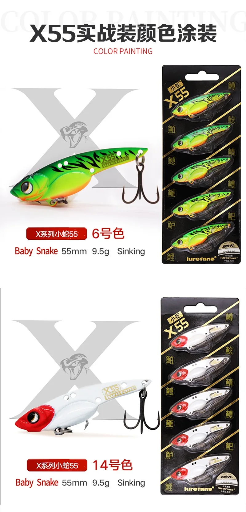 Lurefans-señuelo de pesca Artificial, de 5 piezas señuelo/placa Baby Snake X50/X55/X60 que se hunde, VIB, 7,5/9,5/13,5g, Wobbler para Bass Perch, cebo falso