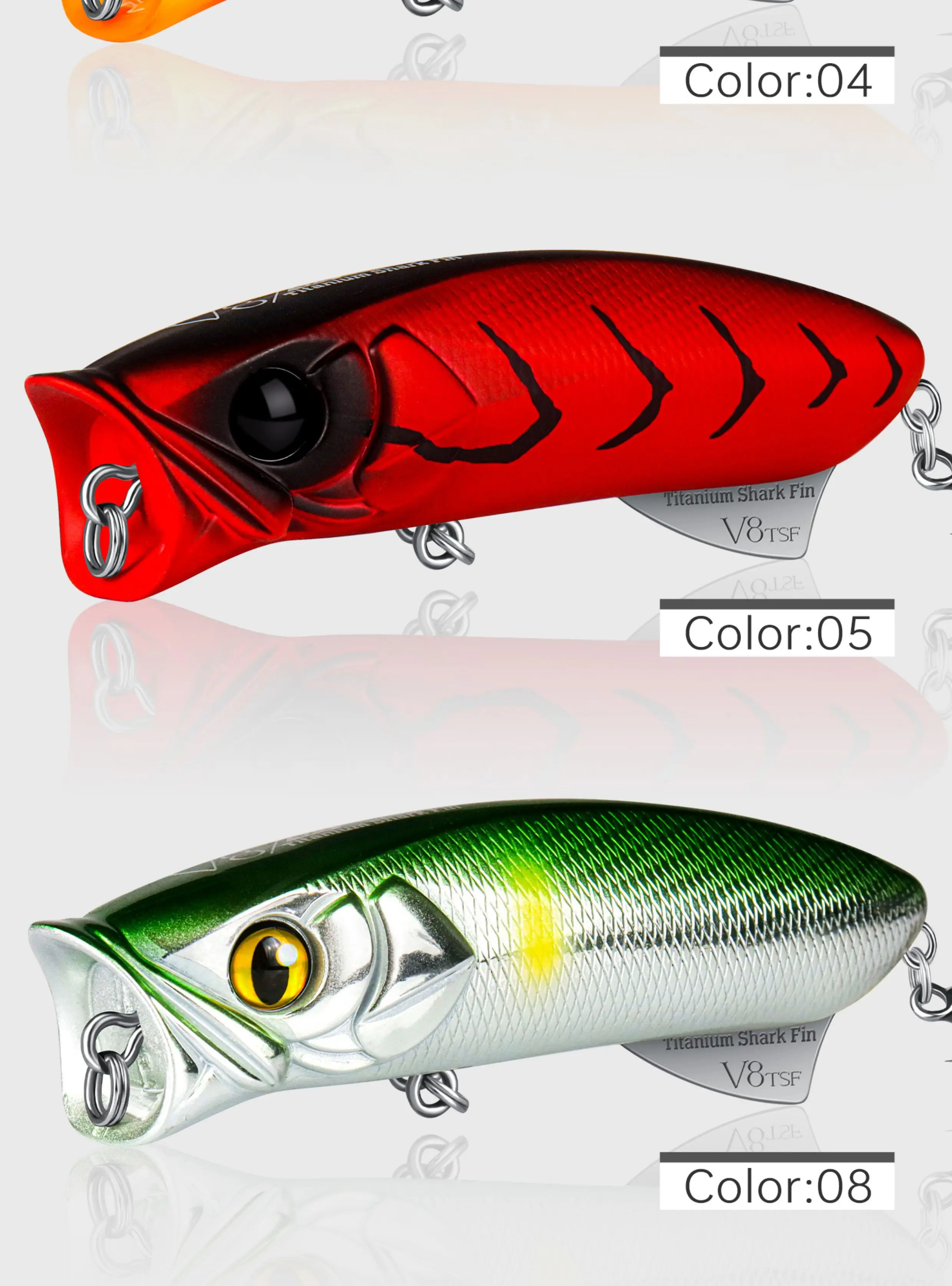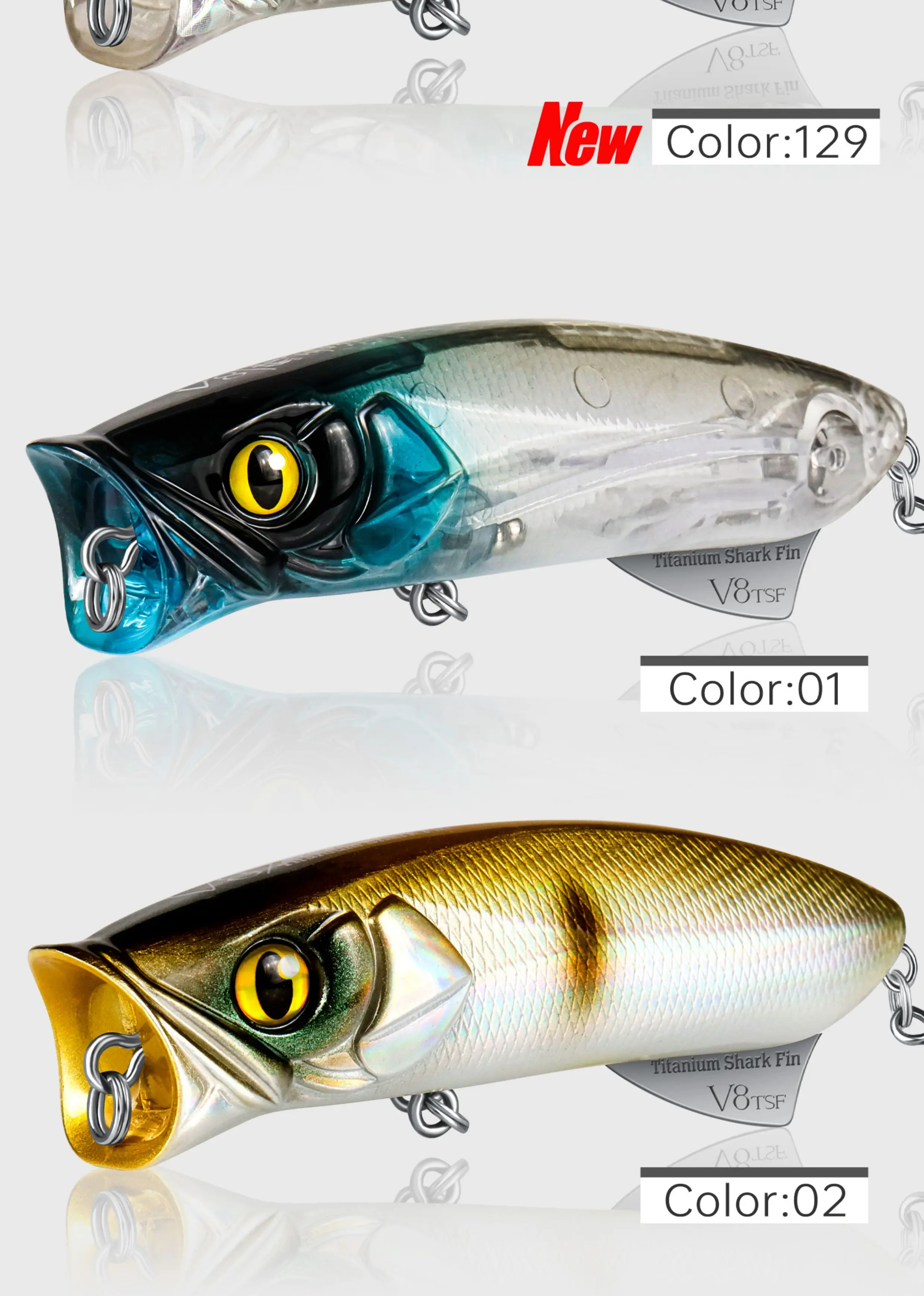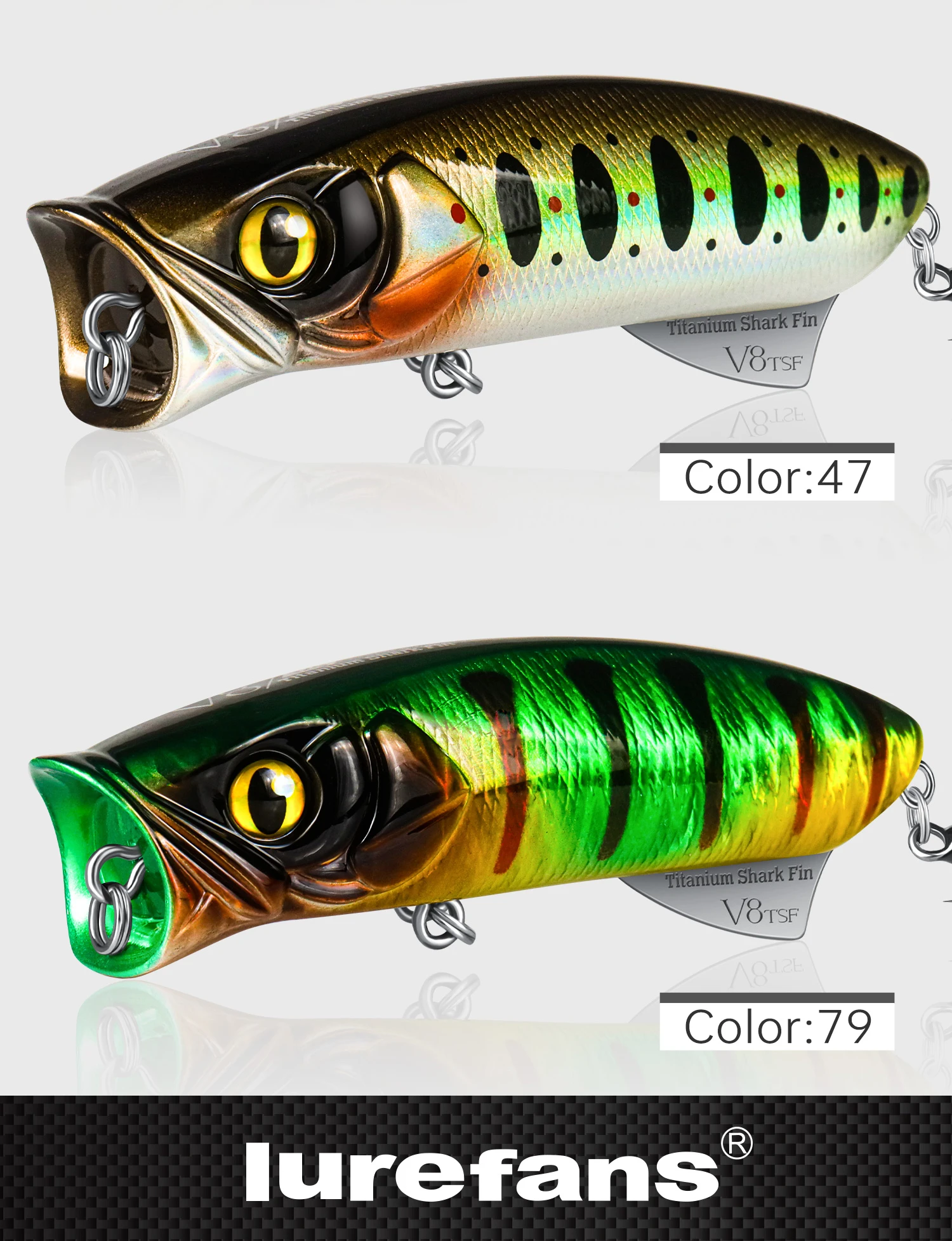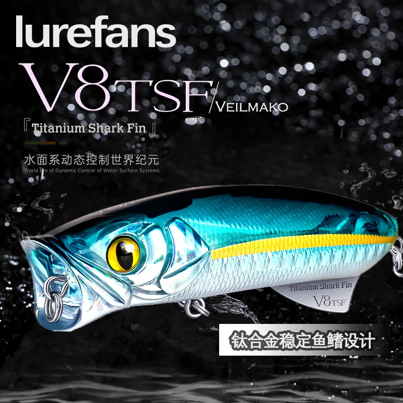 Lurefans V8TSF Popper señuelo de pesca de superficie de agua flotante, 80mm/12g, Wobbler Artificial de tiro largo para aparejos de cebo duro de lubina