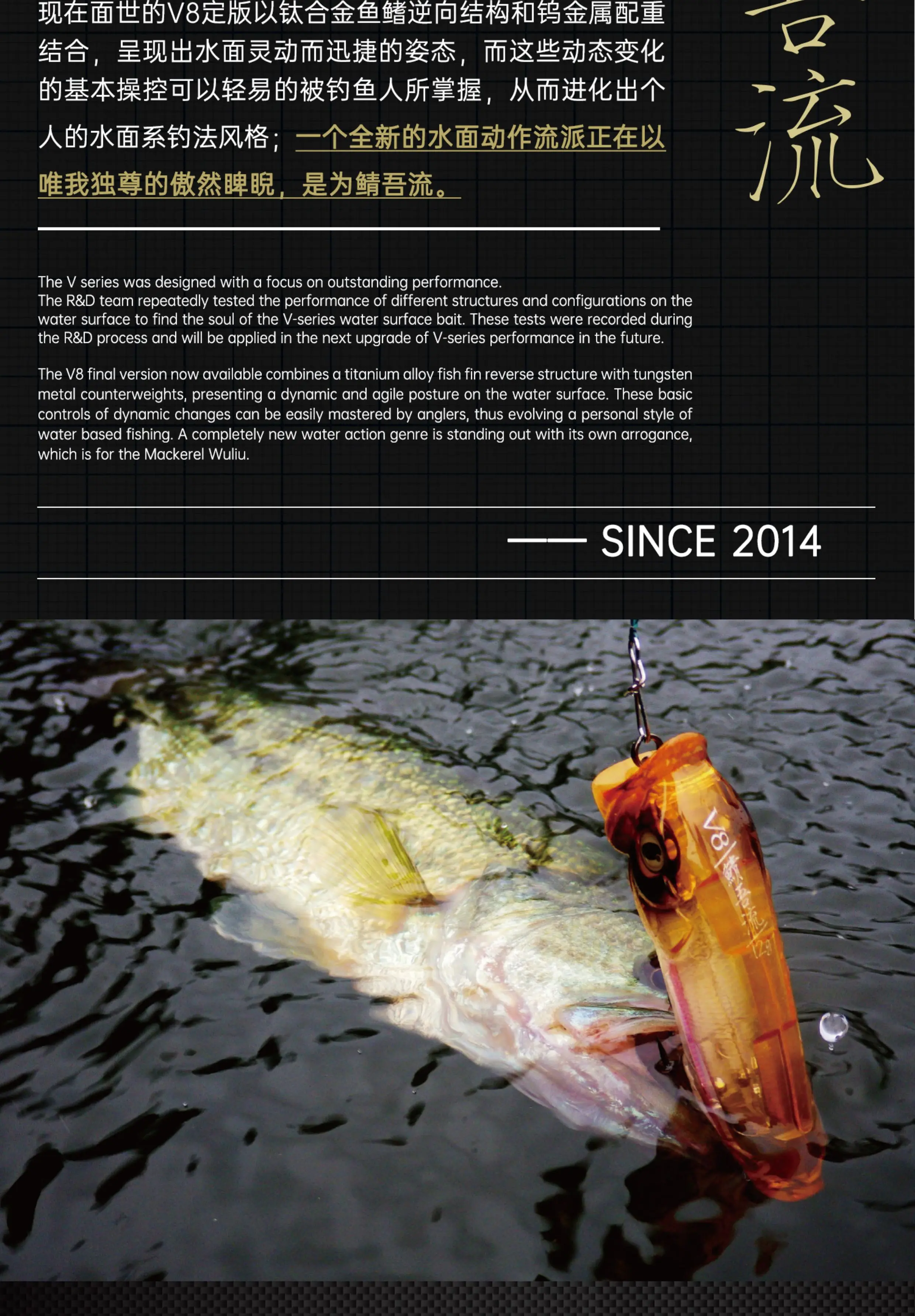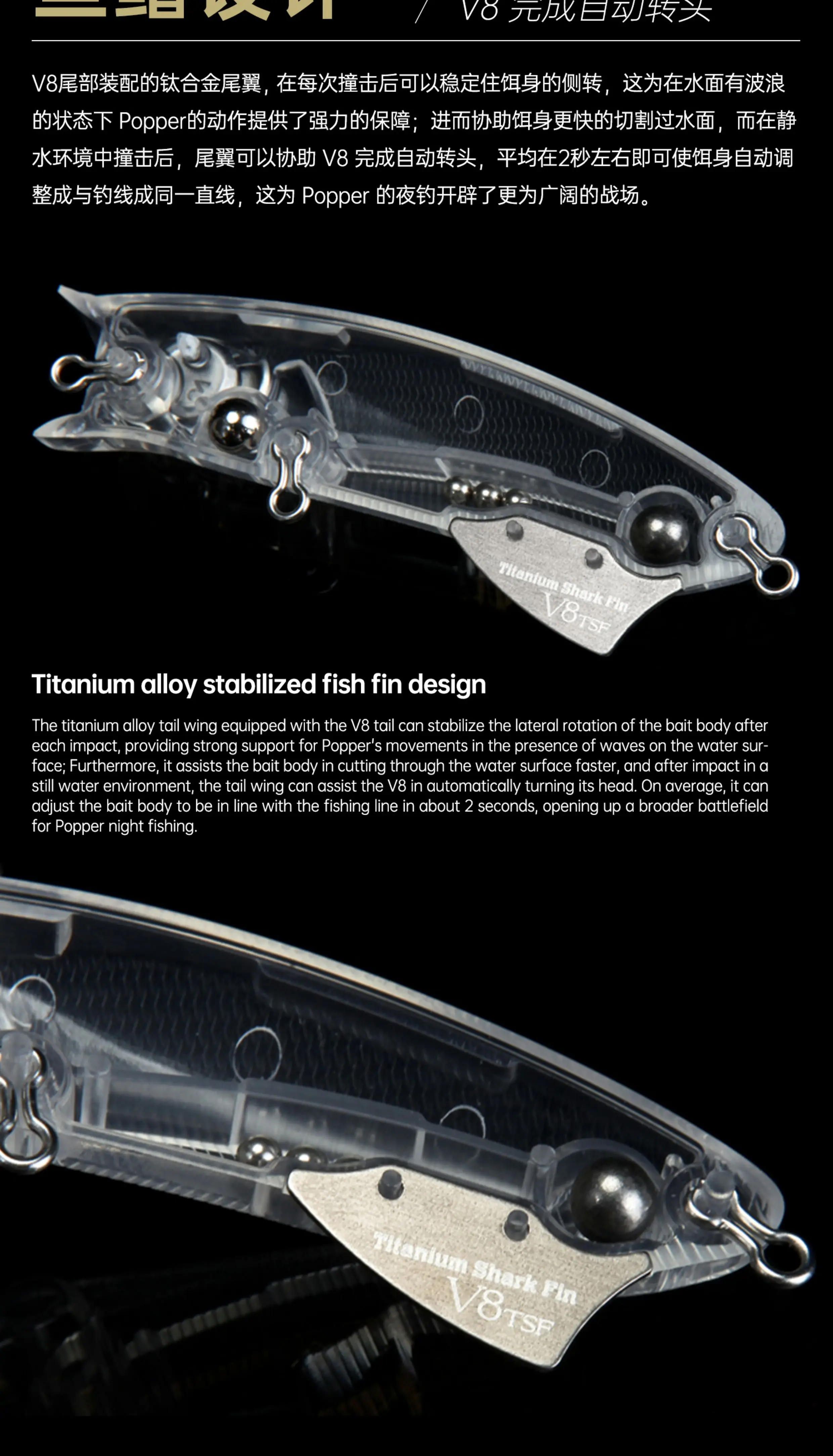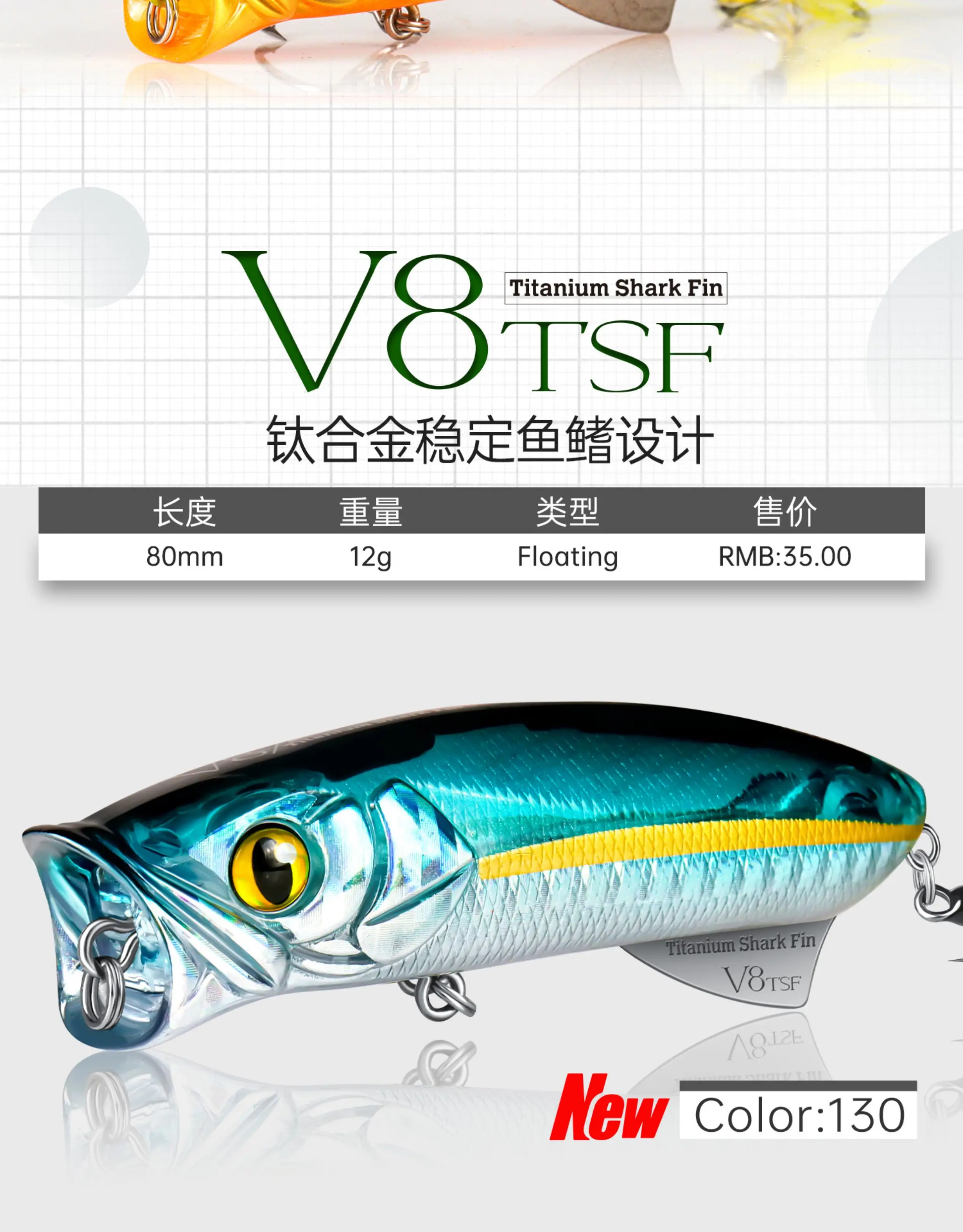 Lurefans V8TSF Popper señuelo de pesca de superficie de agua flotante, 80mm/12g, Wobbler Artificial de tiro largo para aparejos de cebo duro de lubina