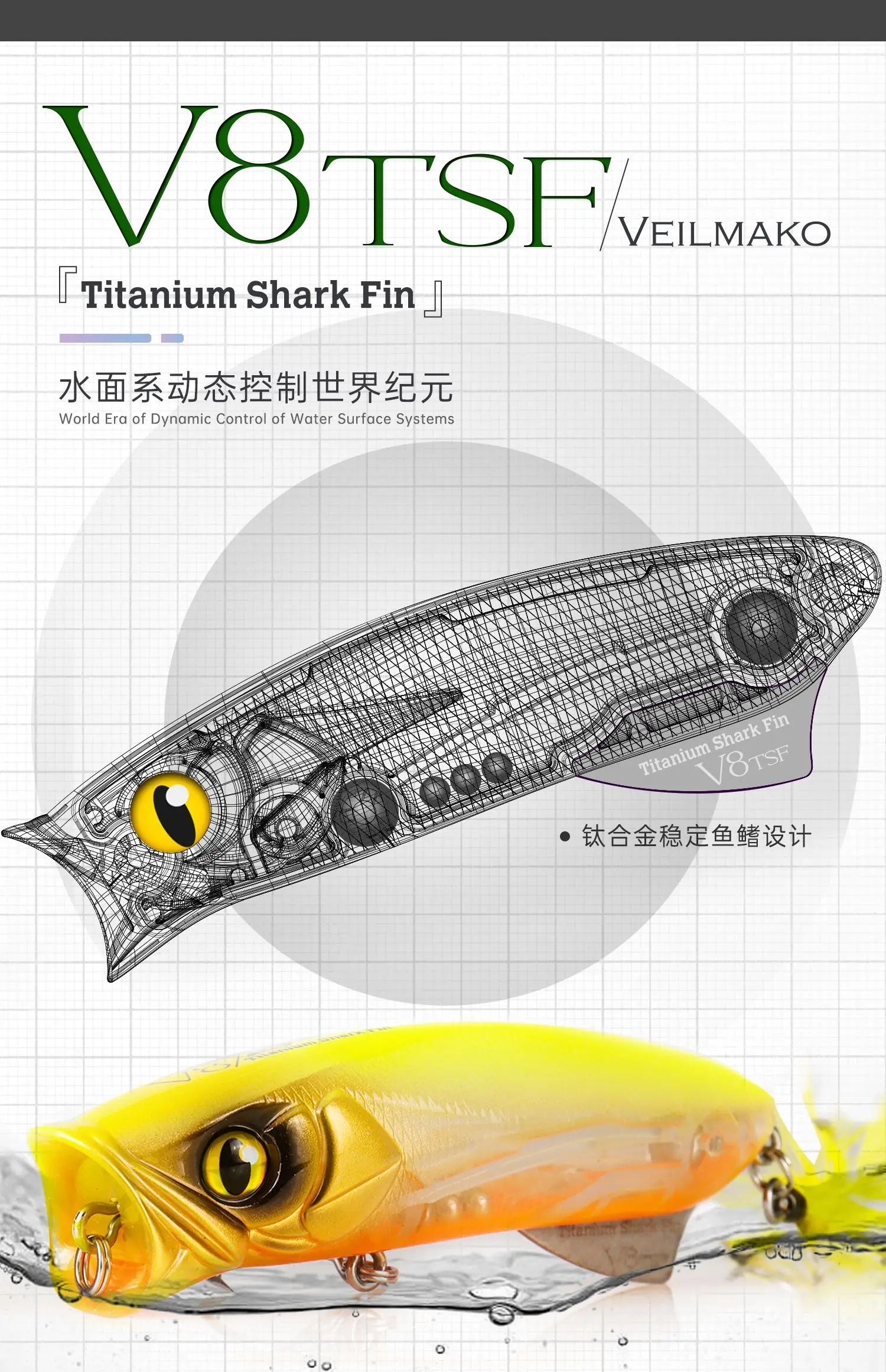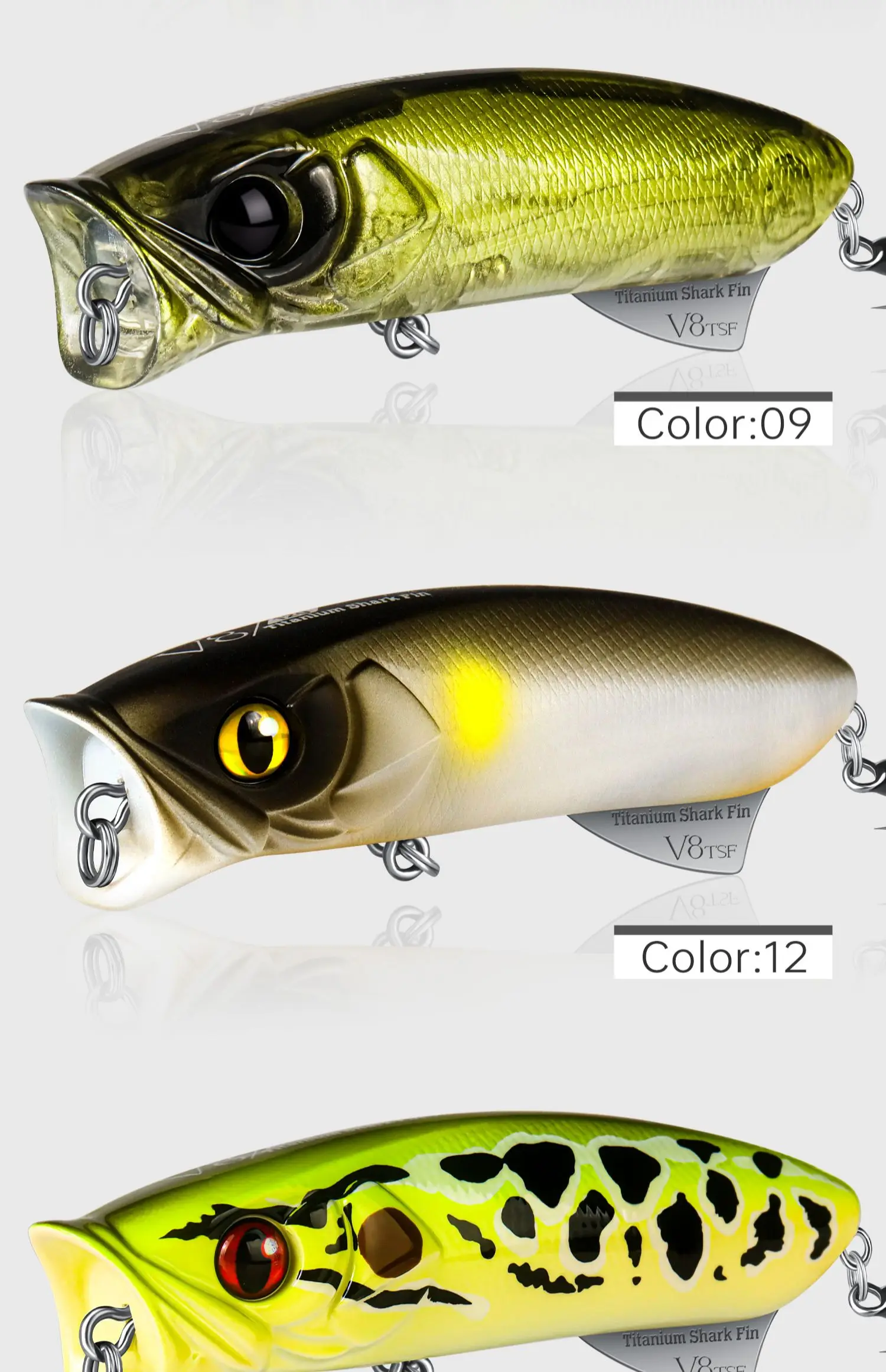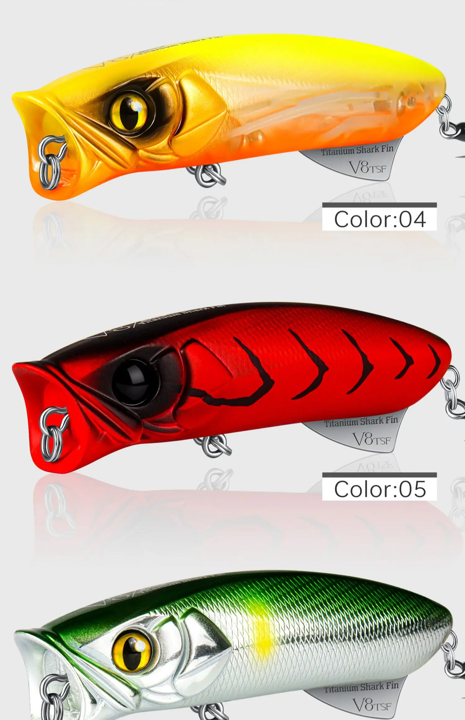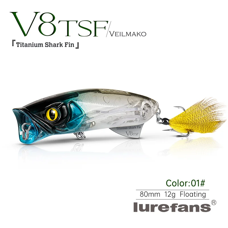 Lurefans V8TSF Popper-señuelo de pesca con superficie de agua flotante, Wobbler Artificial de tiro largo de 80mm/12g para aparejos de cebo duro para lubina