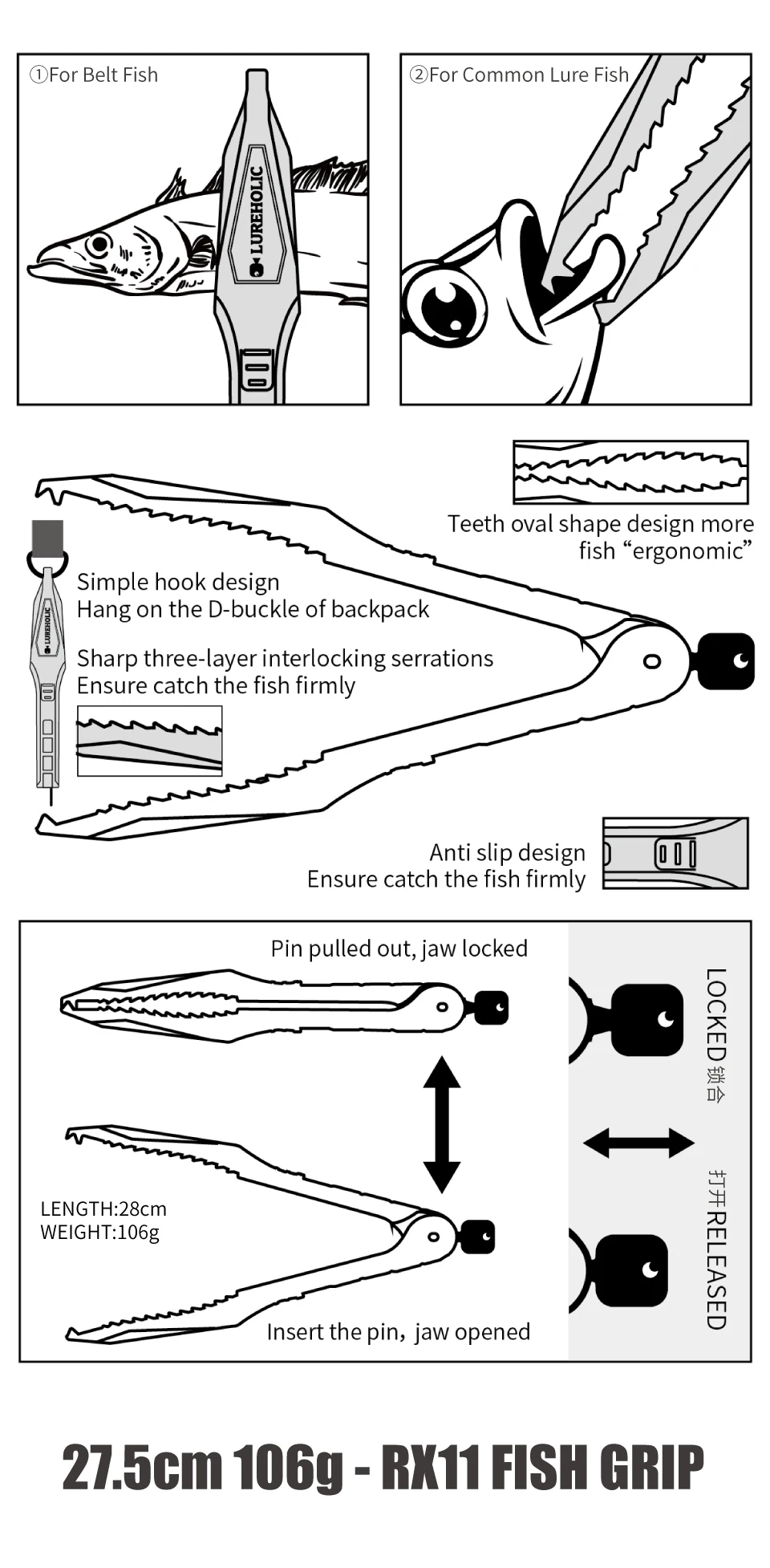 Lureholic 27,5 cm 106g agarre de plástico para peces Clip de pescado multifuncional controlador de mano herramienta de aparejos abrazadera de agarre corporal de pesca