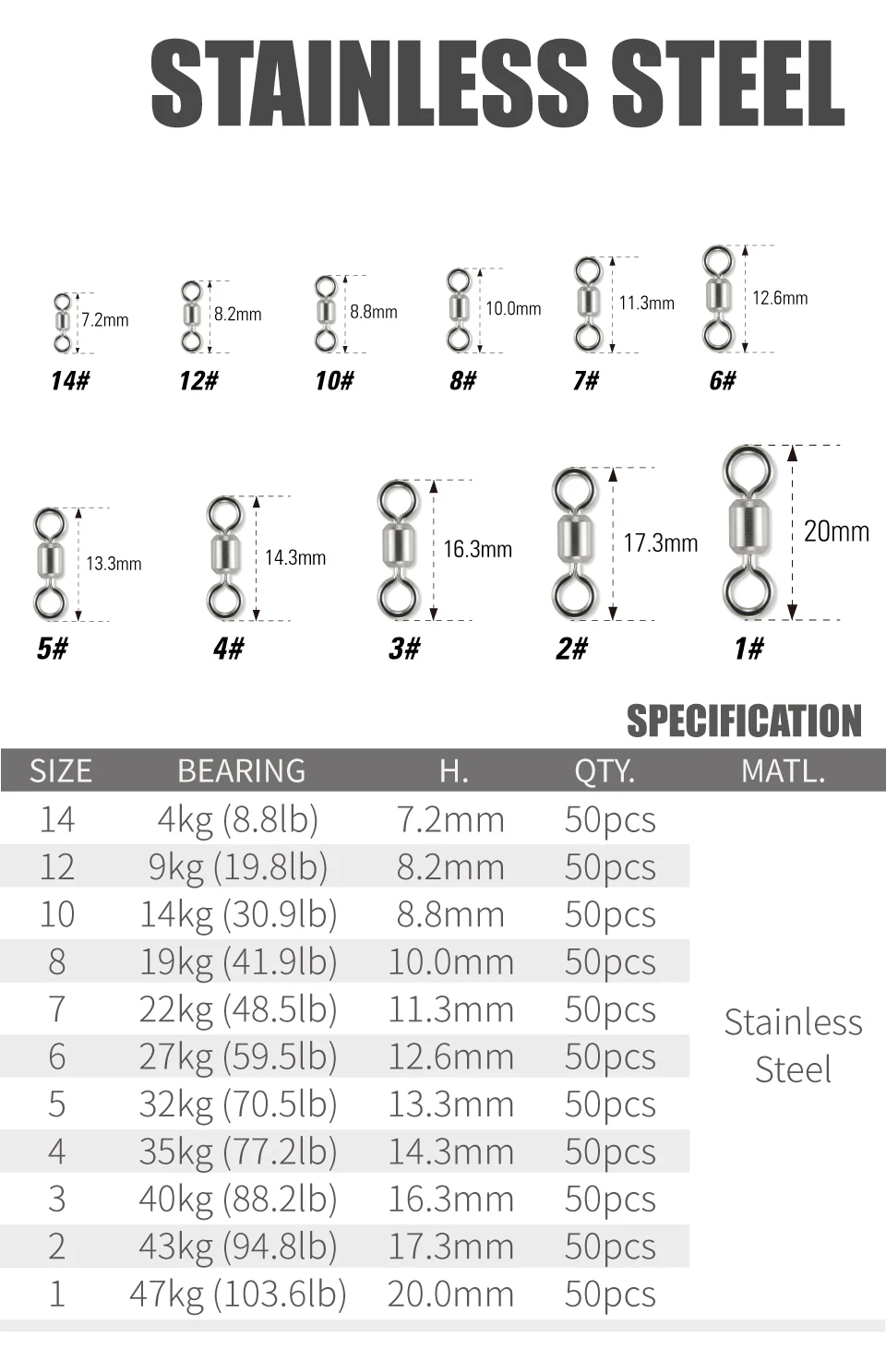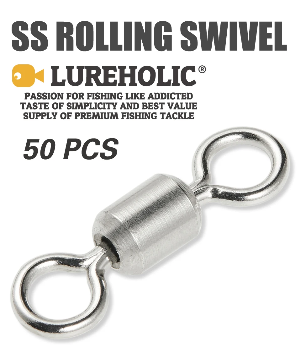 LUREHOLIC 50 Uds SS304 giratorio de acero inoxidable súper fuerte capacidad excepcional de rodamiento 8 formas conectar señuelo pesca