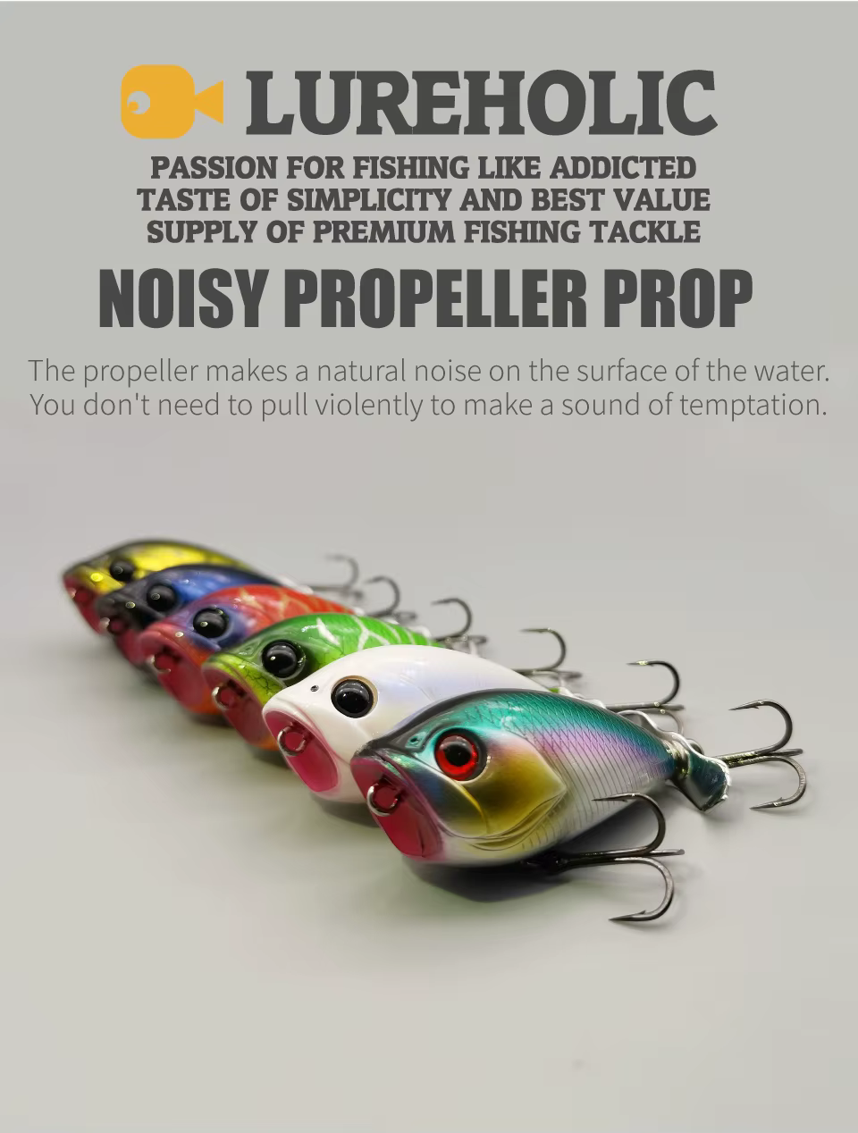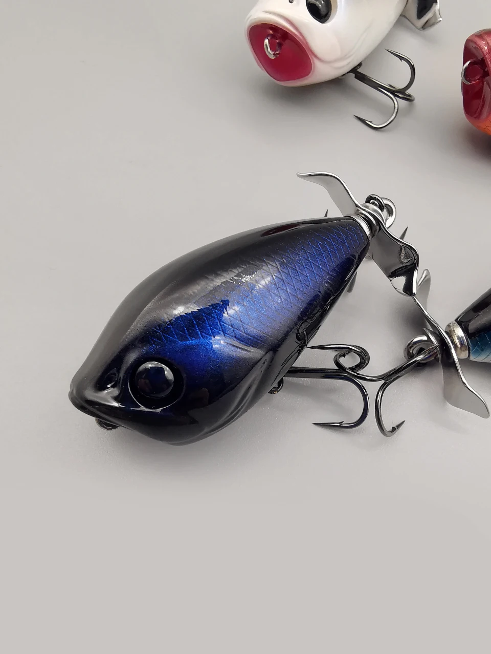 No hay mala popper con hélice en la cola. Hecho de manera bastante eficiente, el color, el largo y el peso interesantes corresponden a lo que se indicó. Entrega rápida, a Moscú en 14 días en la composición de un paquete consolidado.