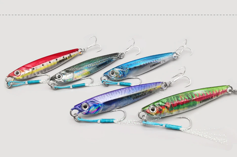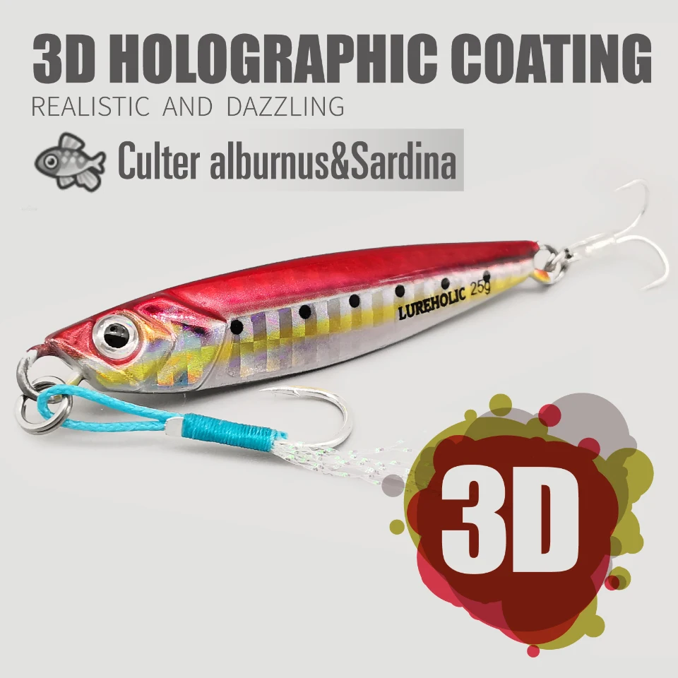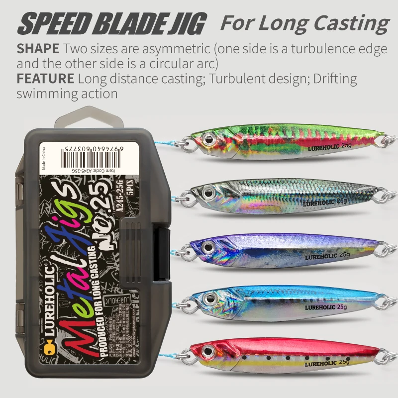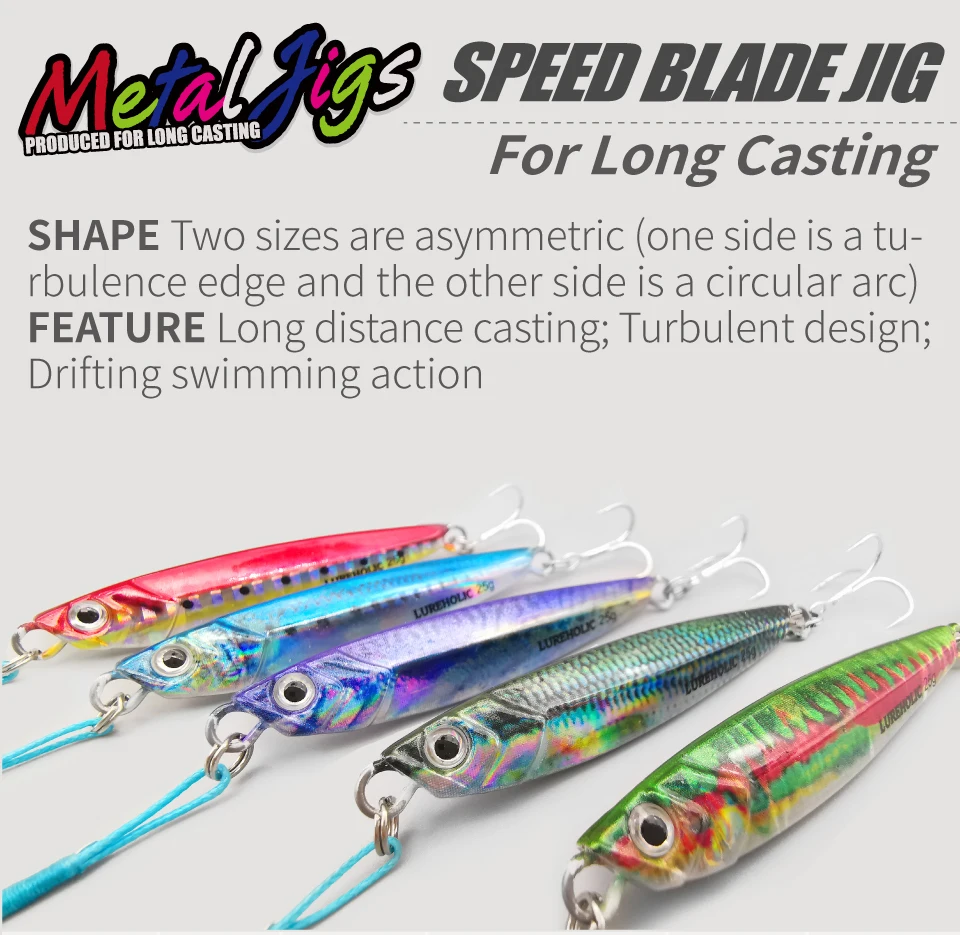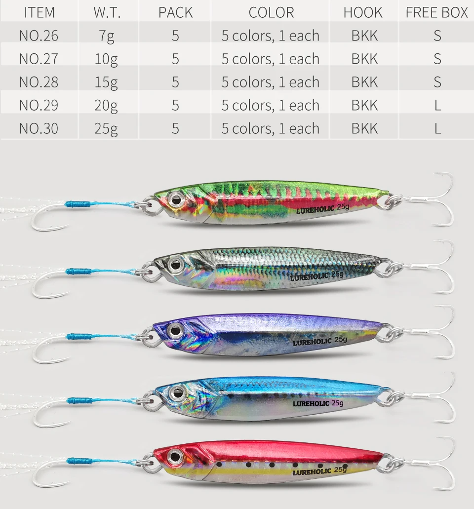 LUREHOLIC 7g 10g 15g 20g 25g plantilla de Metal impresa en 3D 5 uds Combo para señuelo pesca hoja de velocidad fundición larga con anzuelos BKK