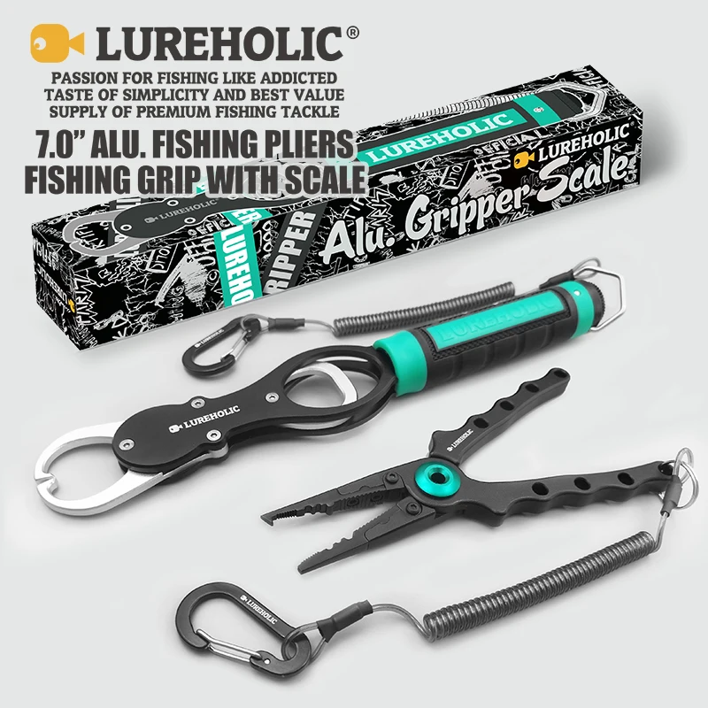 LUREHOLIC-Alicates de pesca de aleación de aluminio, juego de agarre, aparejos de pesca, gancho de engranaje, línea de corte de recuperación, anillo dividido, accesorios de pesca