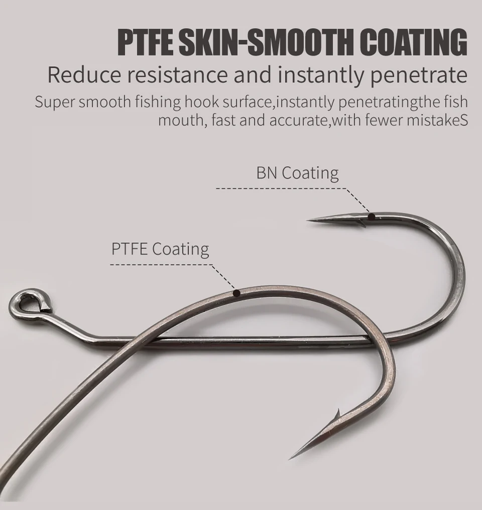 LUREHOLIC-anzuelo de gusano de PTFE, accesorios de pesca, de acero inoxidable