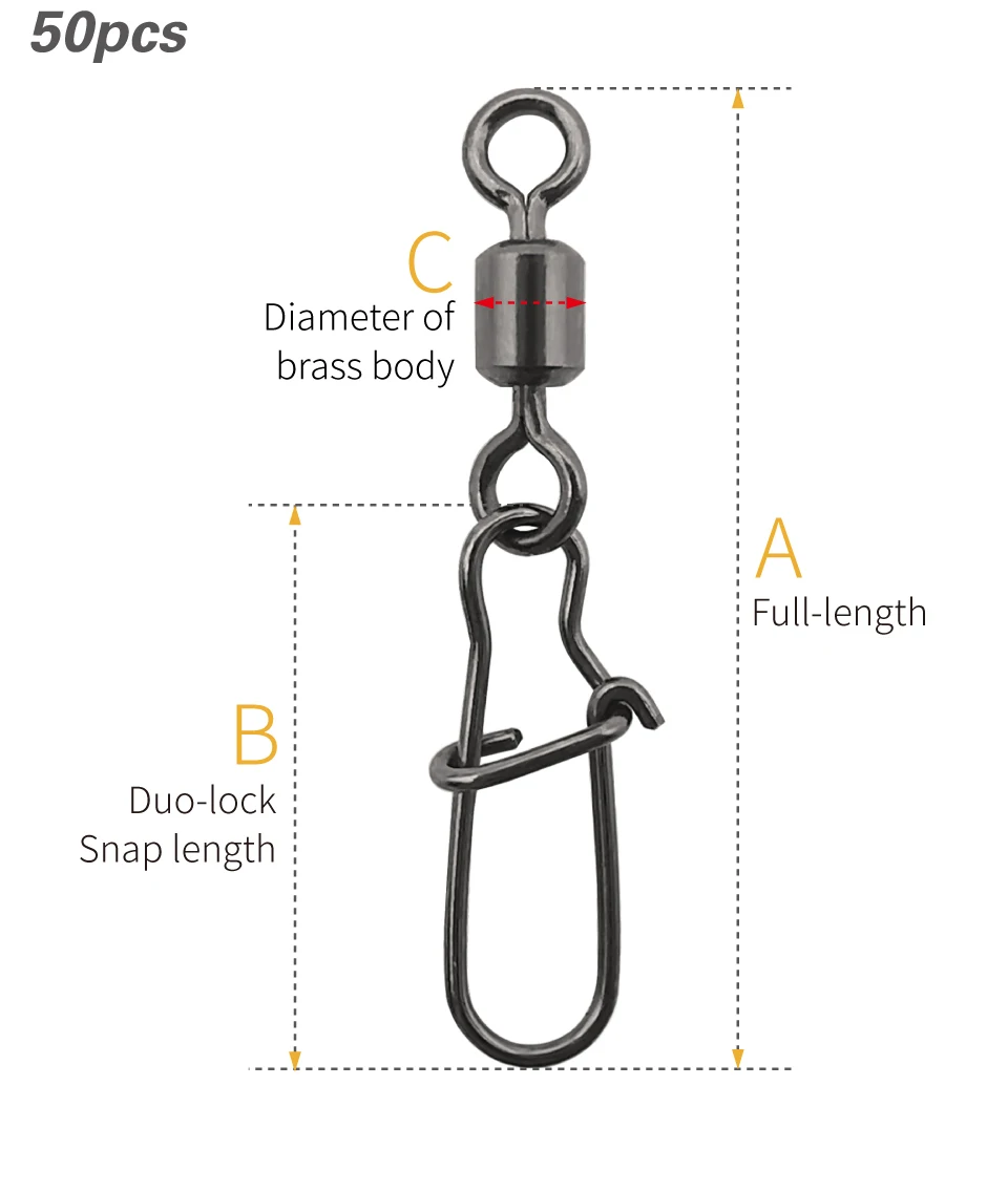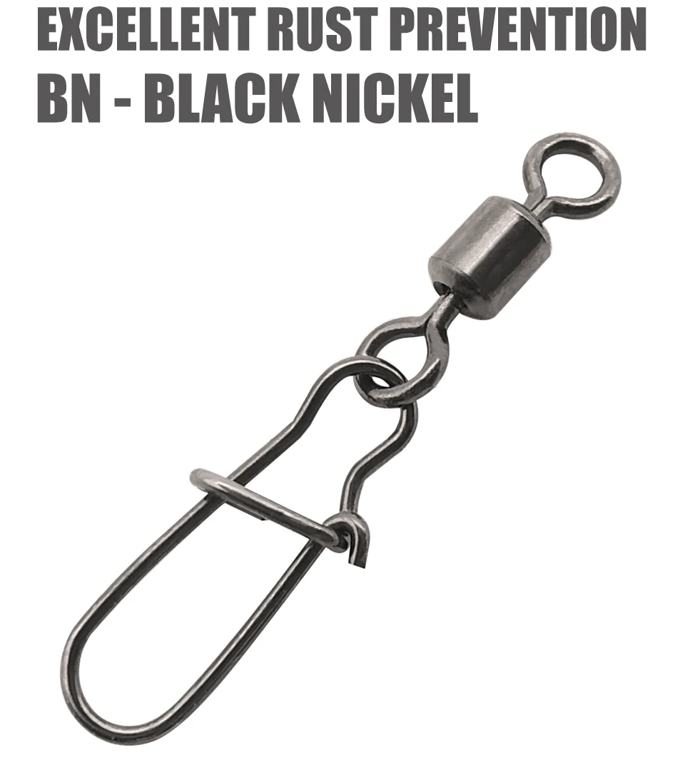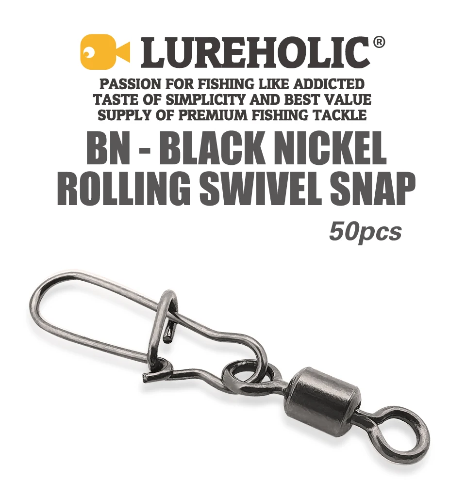 LUREHOLIC Broche giratorio de níquel negro para pesca con señuelo 50 piezas por bolsa 304SS Resistencia a la CORROSión de ALTA RESISTENCIA