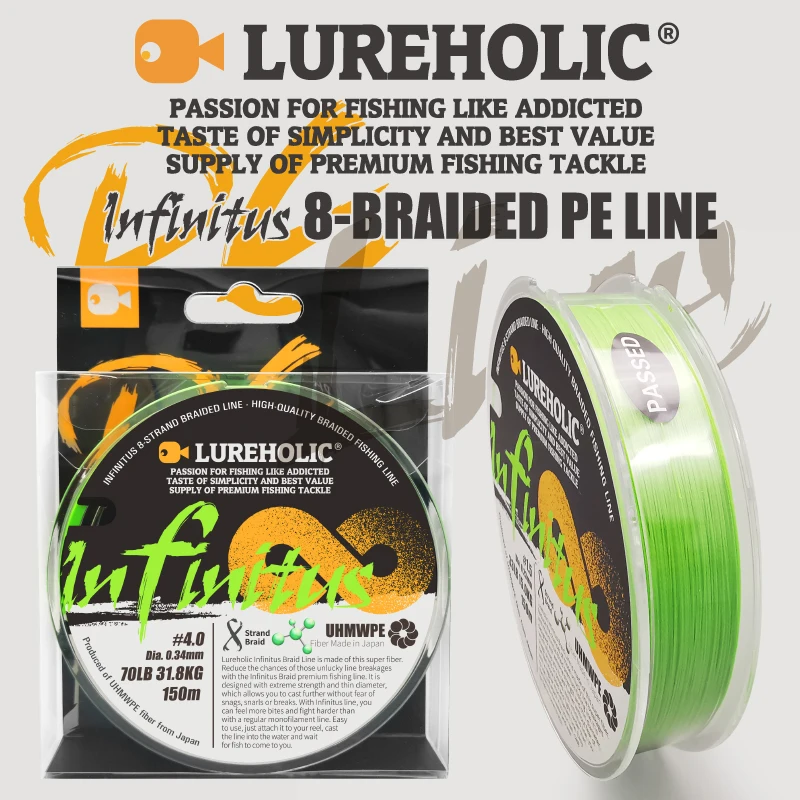 LUREHOLIC-línea de pesca trenzada, 150M, Infinitus8 PE, 8 señuelos, fibra UHMWPE de Japón, línea fuerte