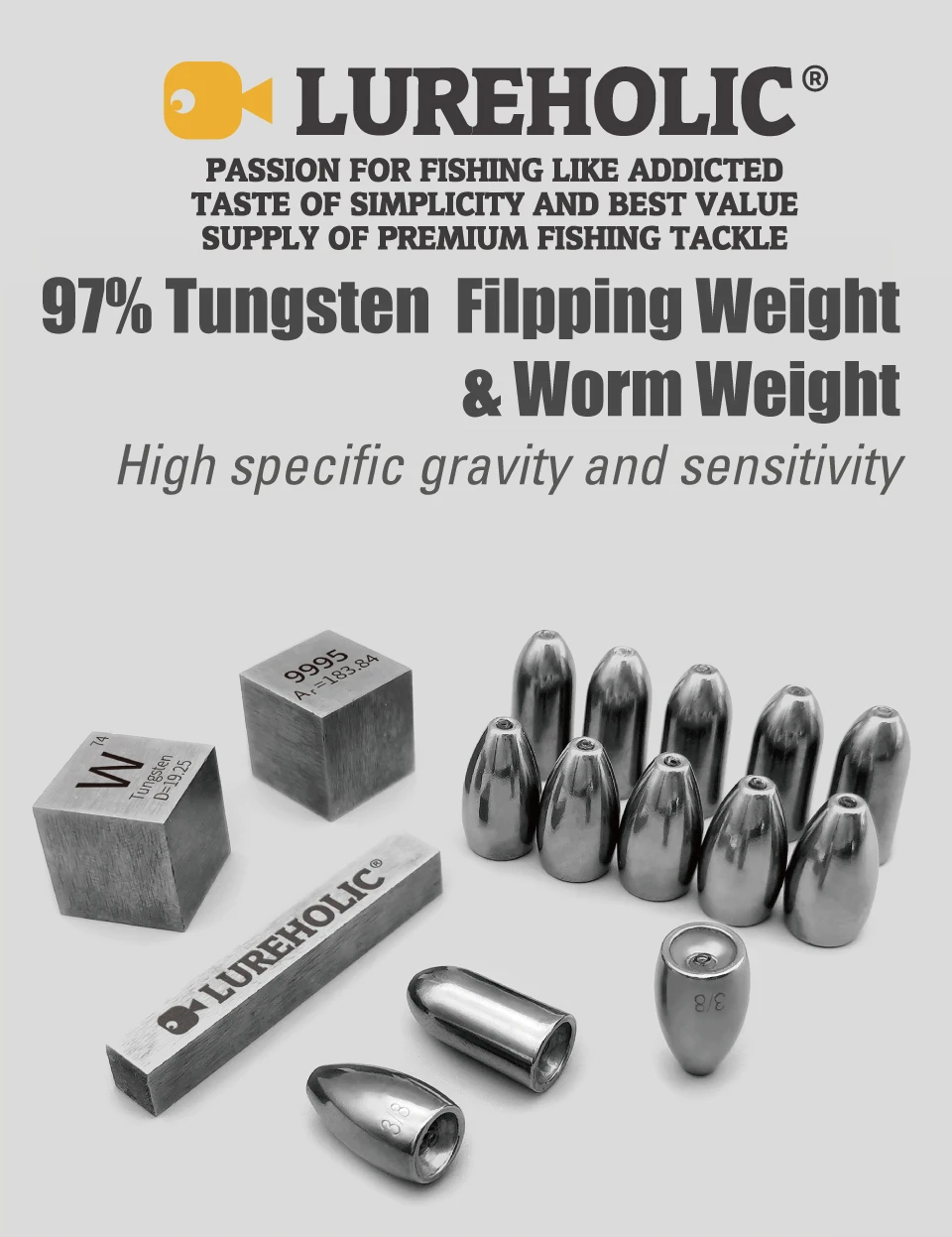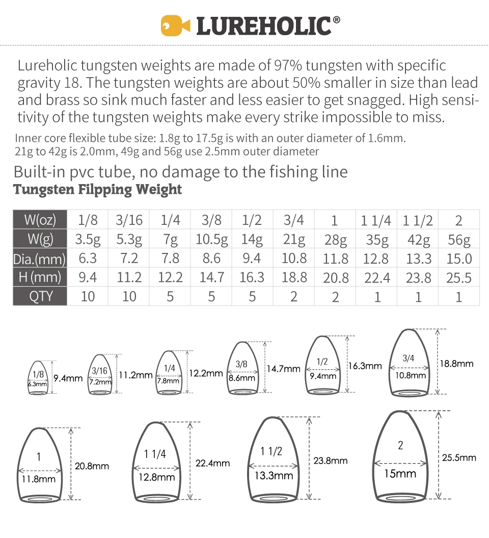 Lureholic Texas-plombos de tungsteno, gusano volteador, 1/16-2 OZ, pesas de bala, columnar, 3,5-56g, accesorios de Señuelos de Pesca de lubina