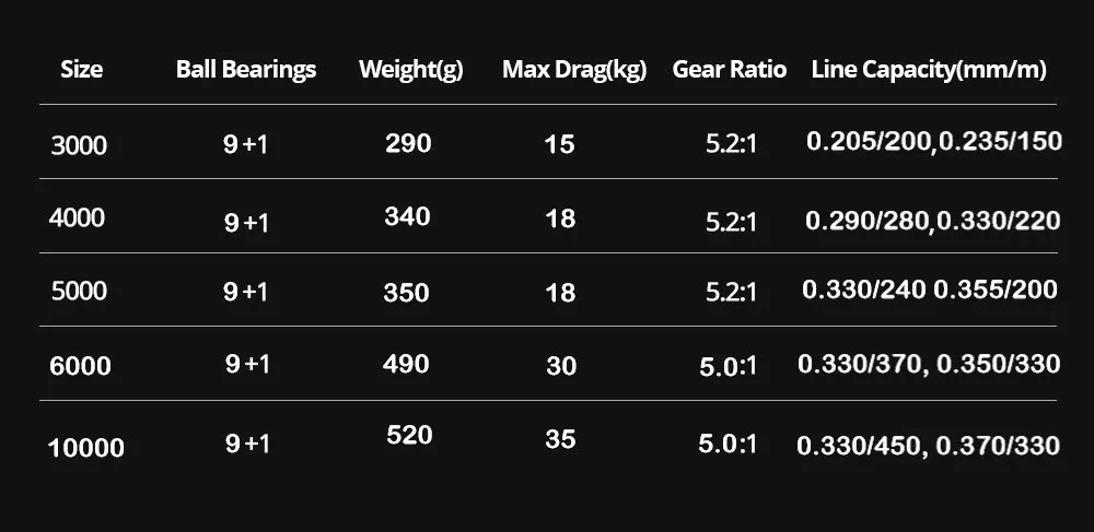 Hasta 35kg de arrastre suave, 5 unidades de arrastre de carbono de triple disco.