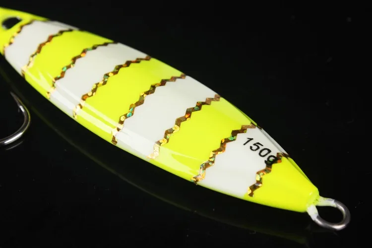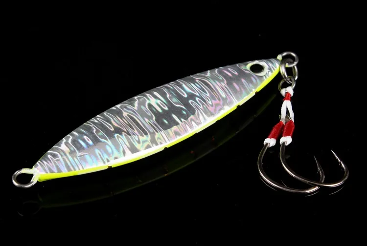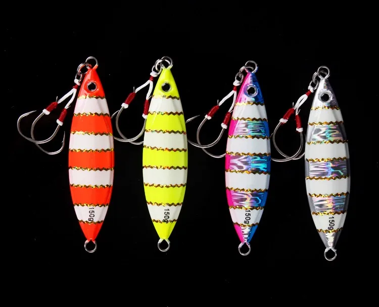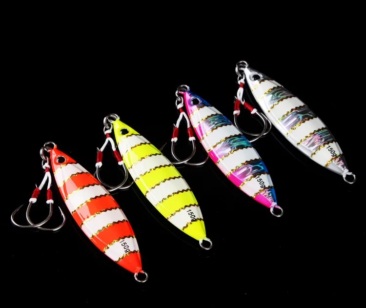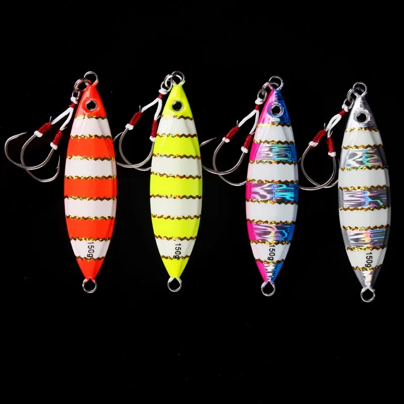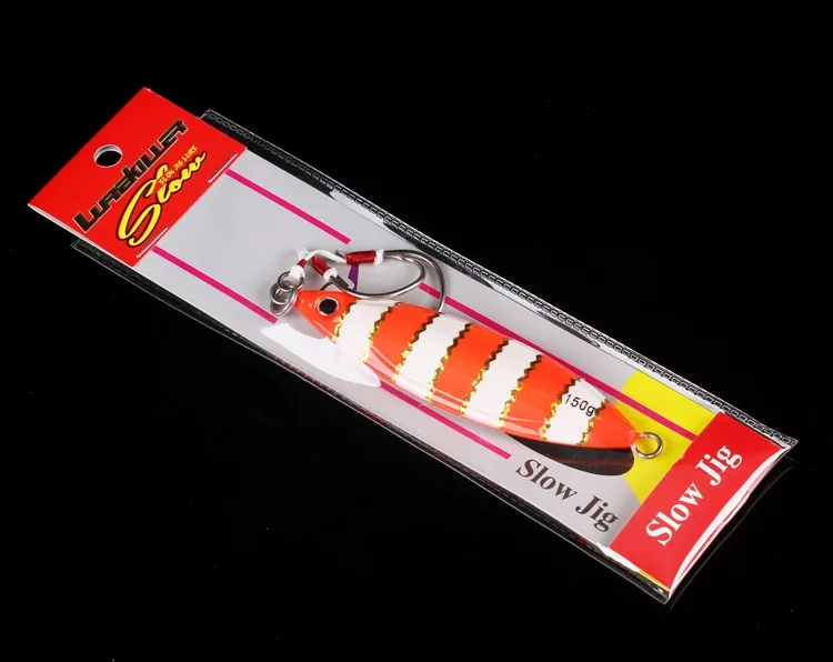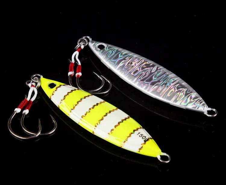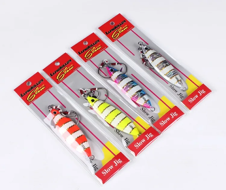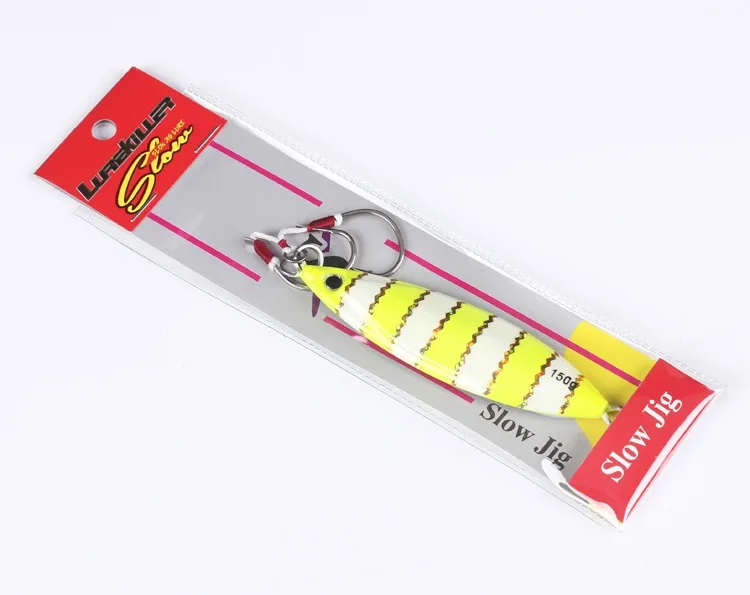 Lurekiller-Señuelos de Pesca de plantilla de metal, 80g, 60, 120, 150, 250g, cebo de jigging lento para agua salada, Señuelos de Pesca con anzuelos, rojo y amarillo