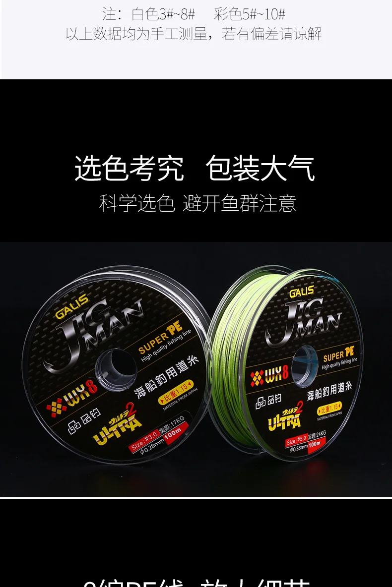 Lureliar-sedal de pesca multifilamento, línea de PE trenzada de 8 hebras de 100m, 17-48kg, para pesca en agua salada