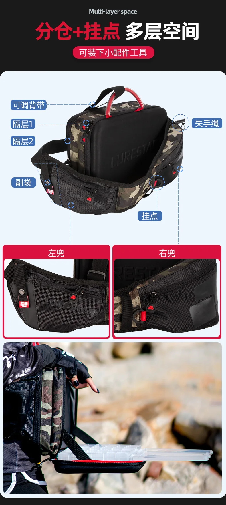 Lurestar bolsa de pesca de un solo hombro, caja de almacenamiento de cebo, aparejos de pesca de señuelo de calidad, 2 uds.