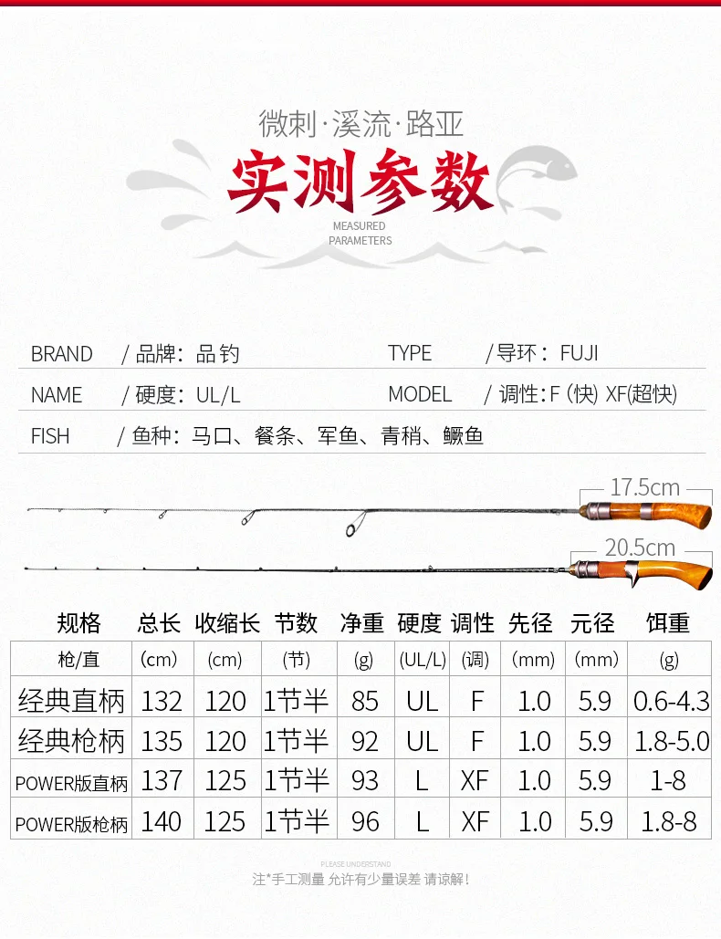 LURESTAR-caña de pescar de fundición fina, 1,32 m, L/UL, giratoria de alto carbono, FUJI Guide, 2 unidades