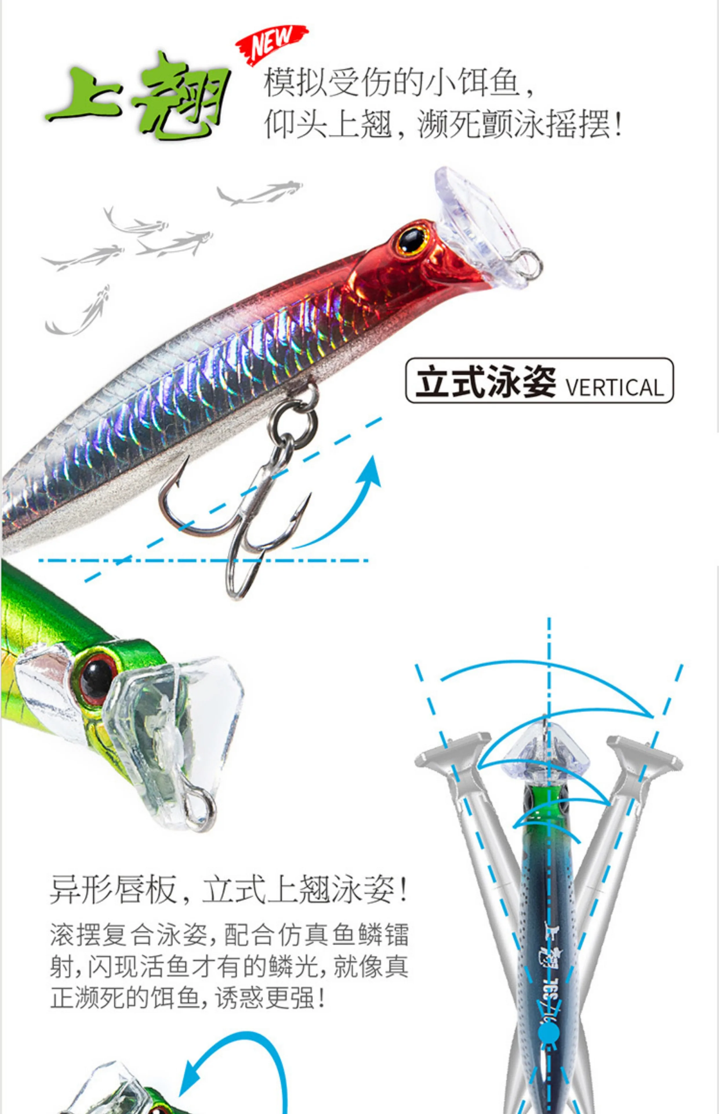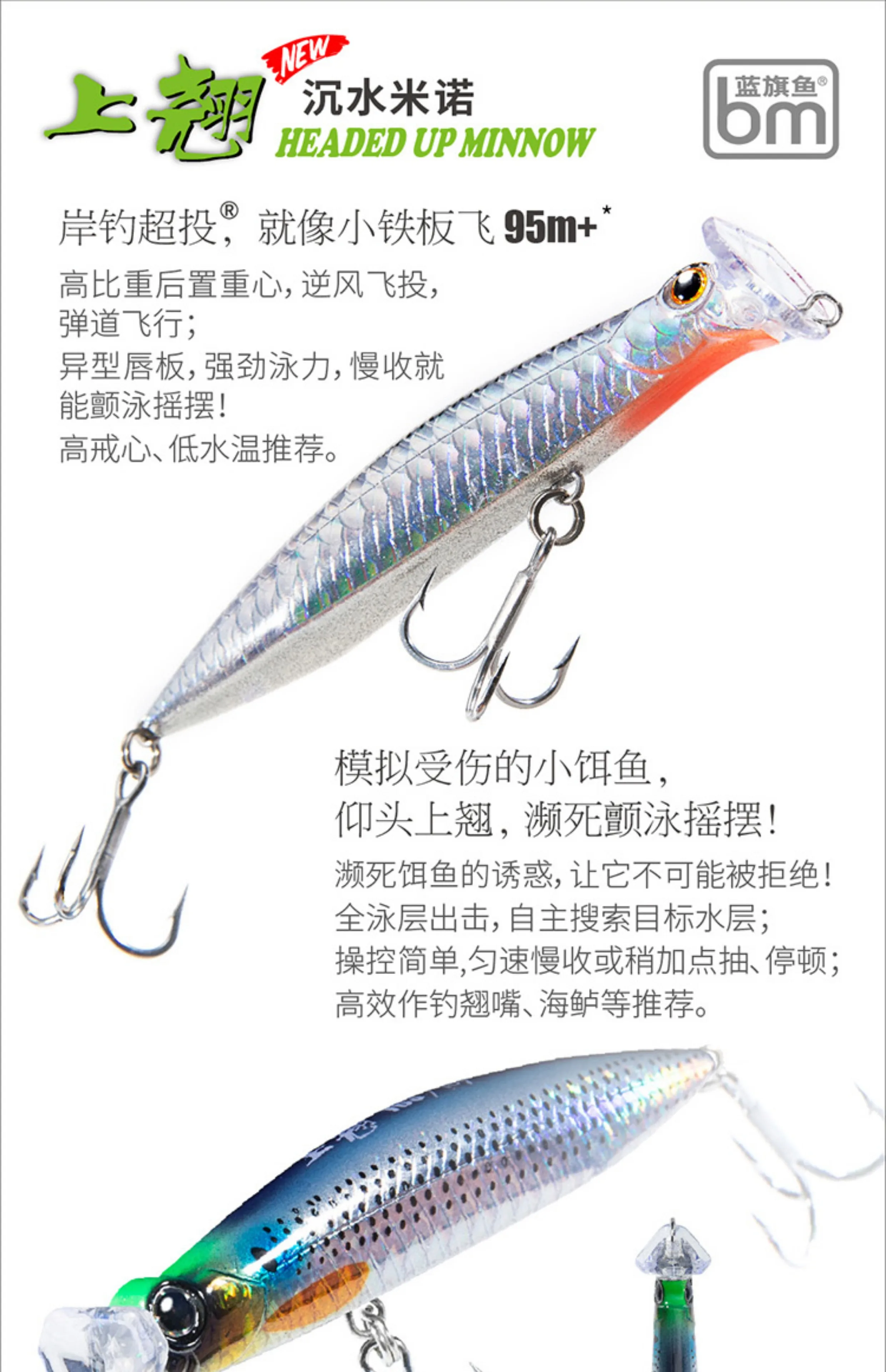 LURETV-cebo Minorua sumergido voltado con bandera azul, balística, tiro súper largo, capa de natación completa, lubina, ejército