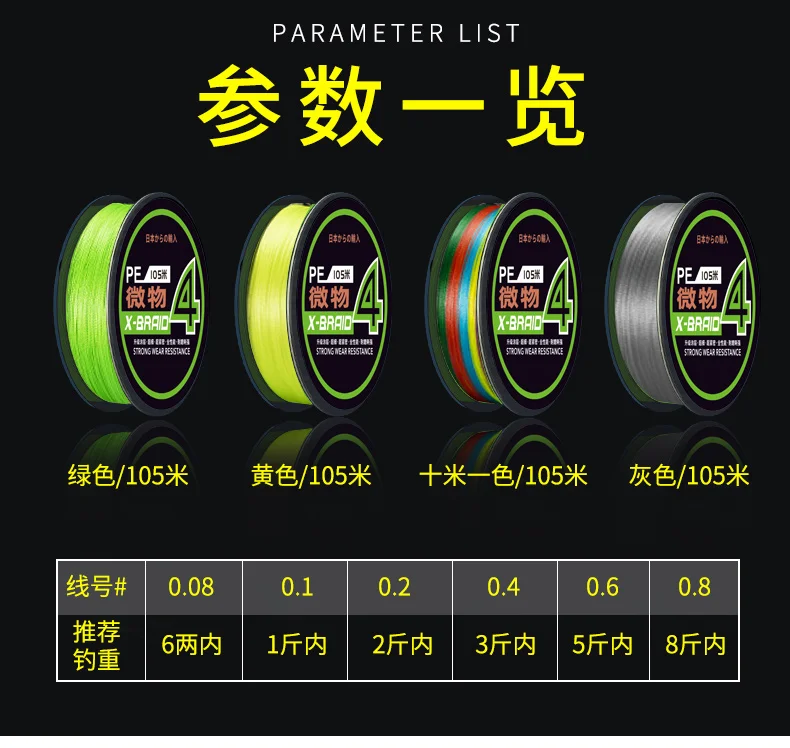 LURETV YGKV8 Importación pe Línea Principal Pesca 4BRAID 150M/100M 0,1 0,2 0,3 0,4 0,6