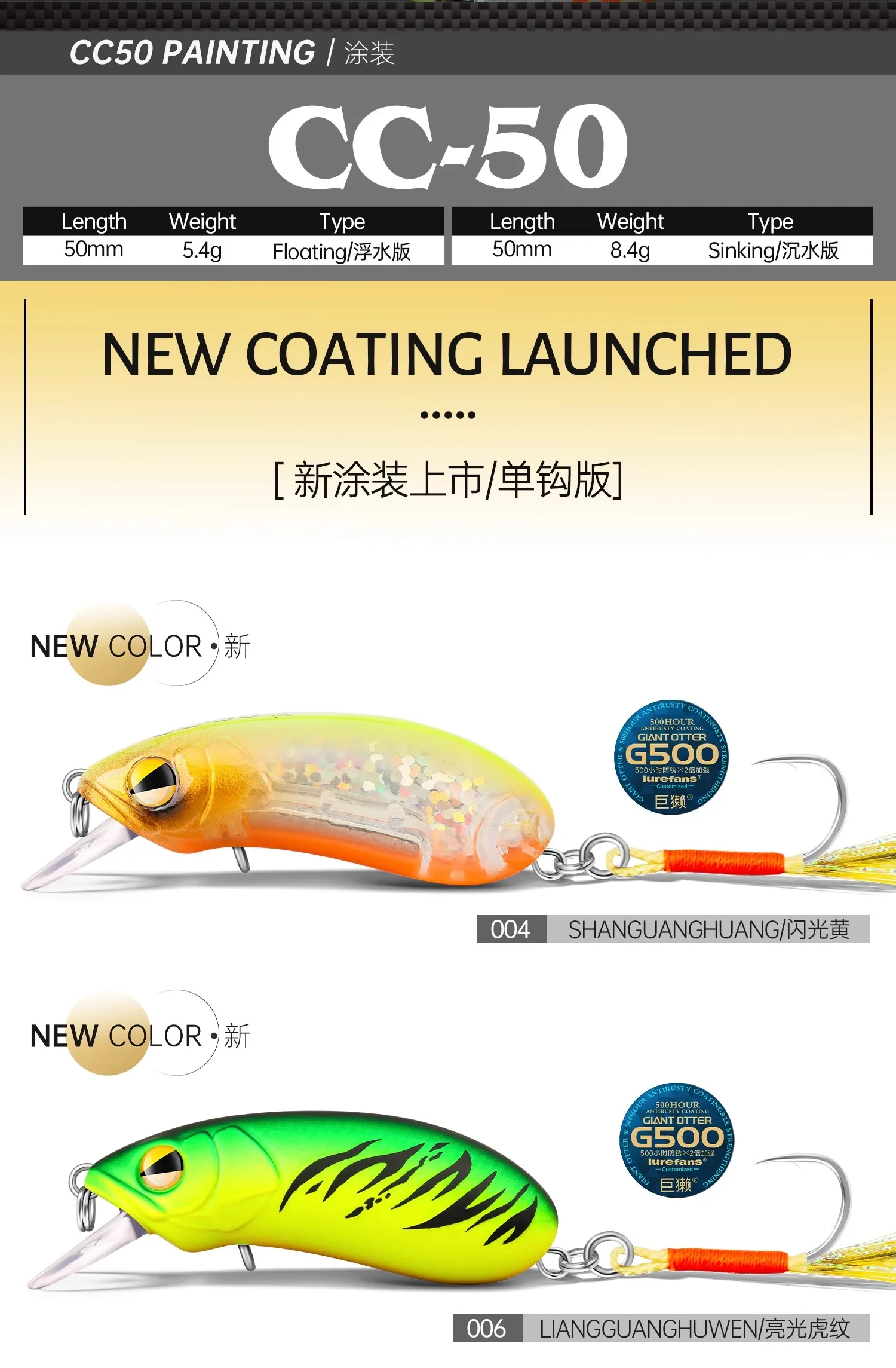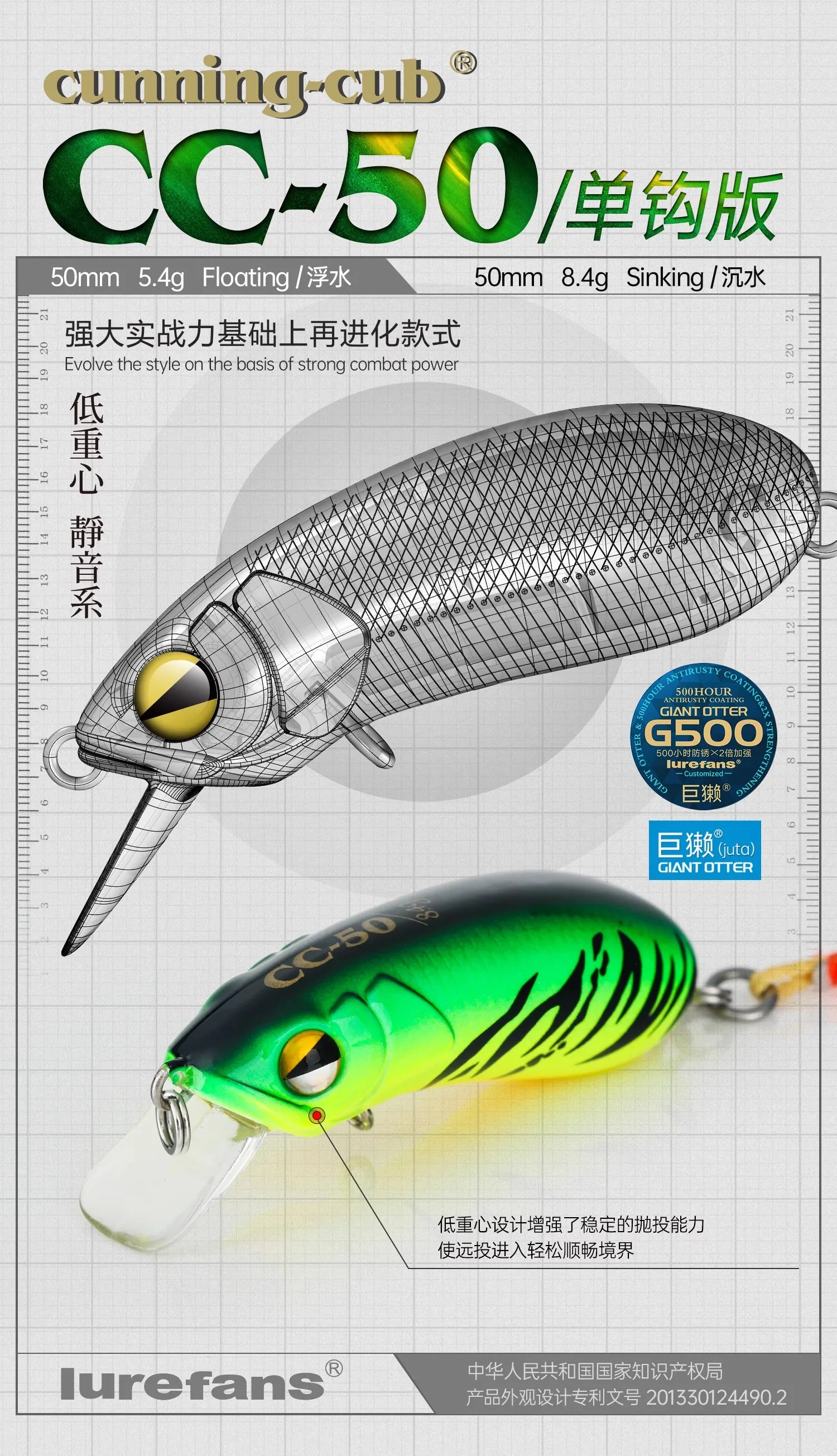 Lurevans-señuelo de pesca de hundimiento flotante CC50, cebo Artificial de un solo gancho, sistema silencioso, 2024g/5,4g, novedad de 8,4
