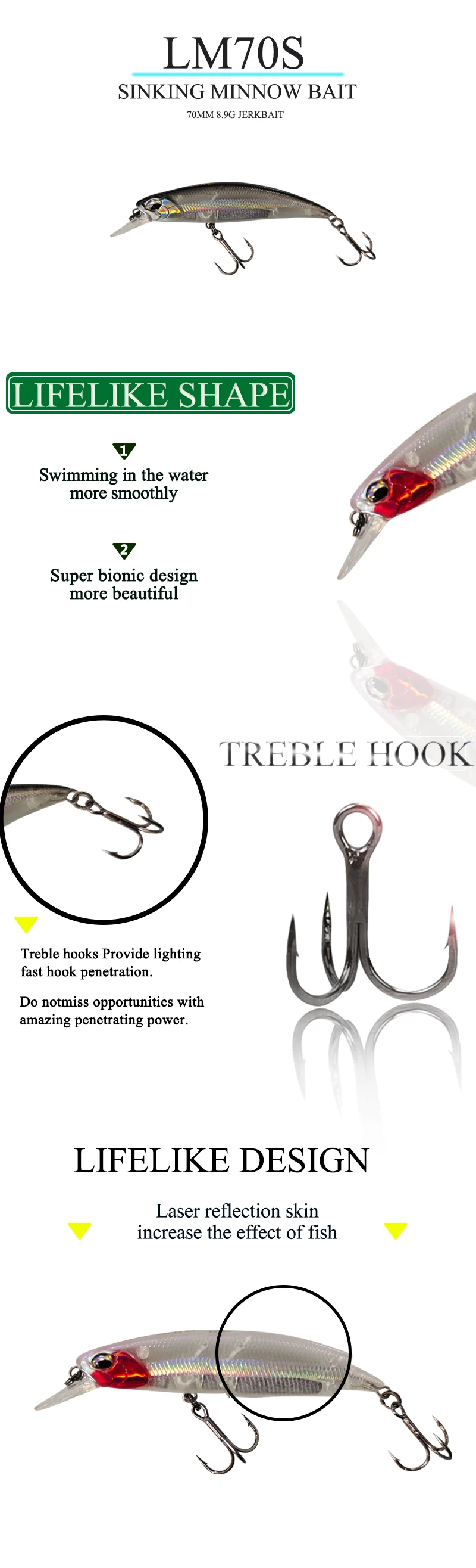 Lutac-Cebo Artificial LM70S para agua salada, cebo duro de hundimiento de trucha de agua dulce, 70MM, 8,9G, Minnow negro Isca