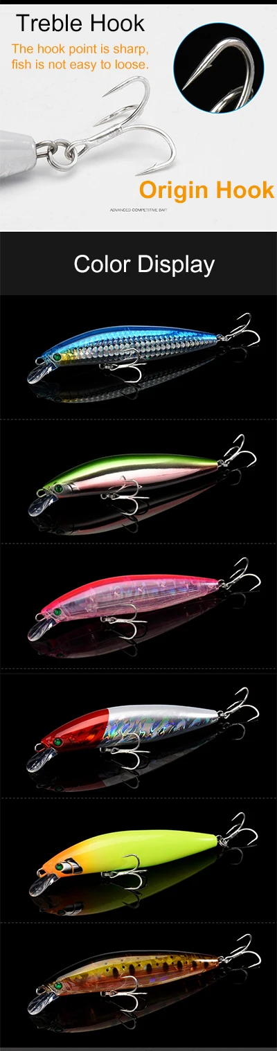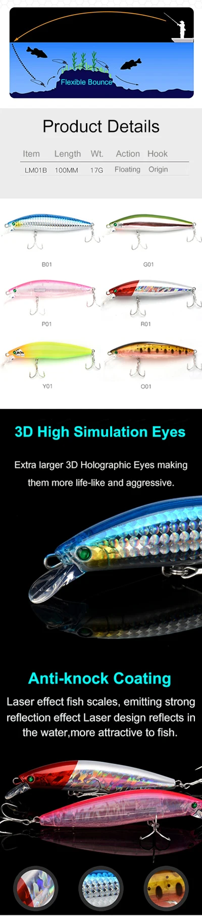 LUTAC Minnow 100mm 17g 6 colores sistema de resorte flotante 1,0 m 3D anzuelo de pesca ojo de pez