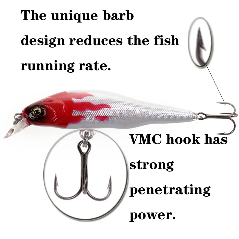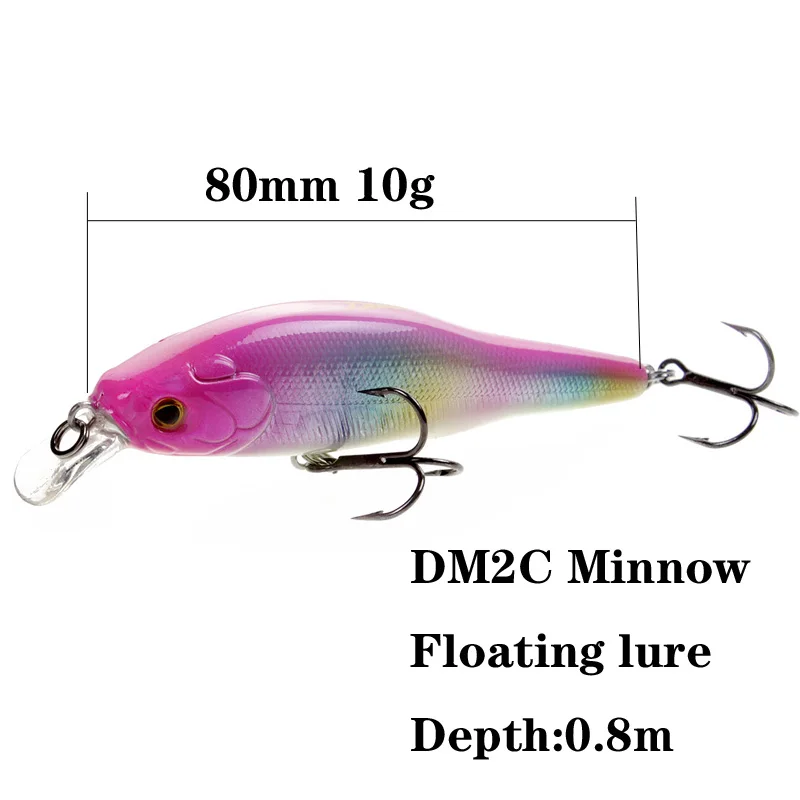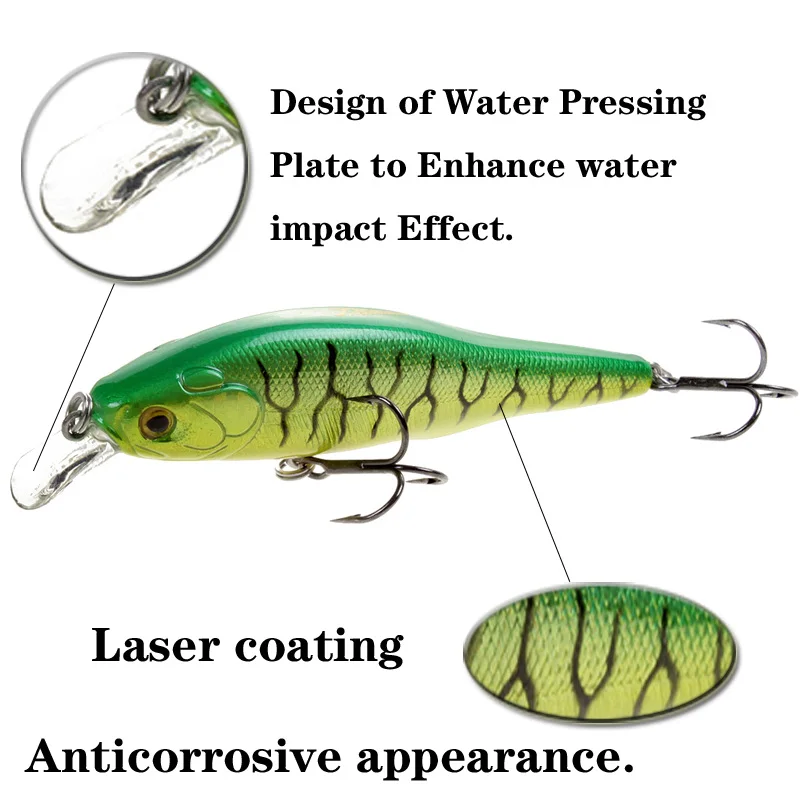 LUTAC Minnow-anzuelo de pesca flotante 3D, 80mm, 10g, 6 colores, 0,8 m