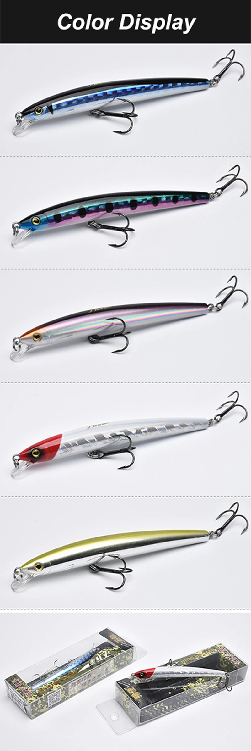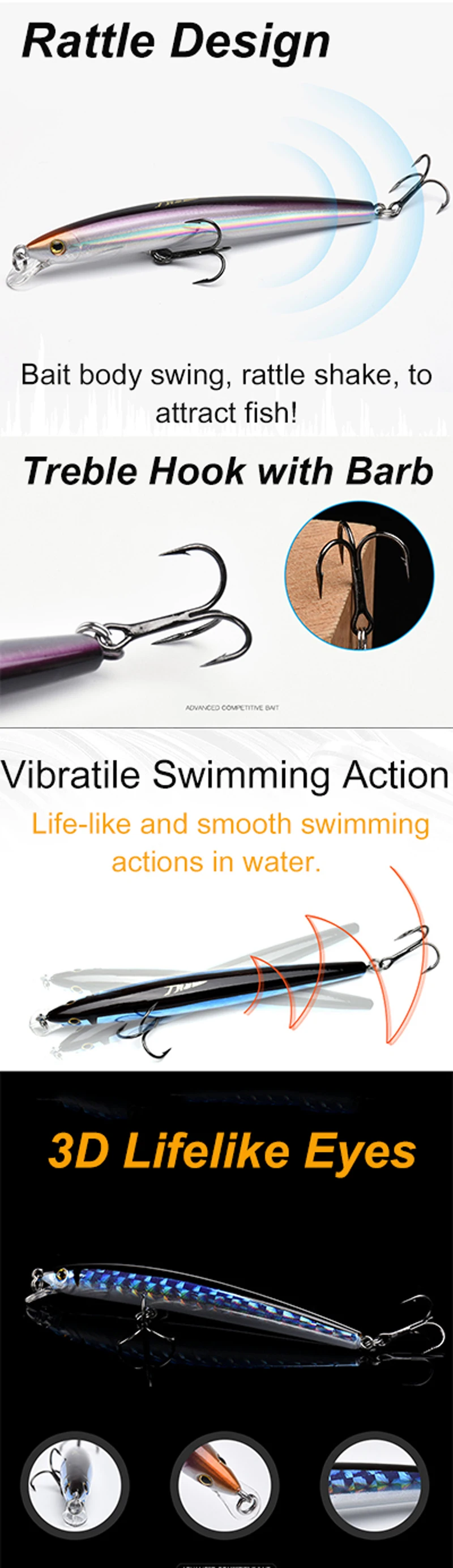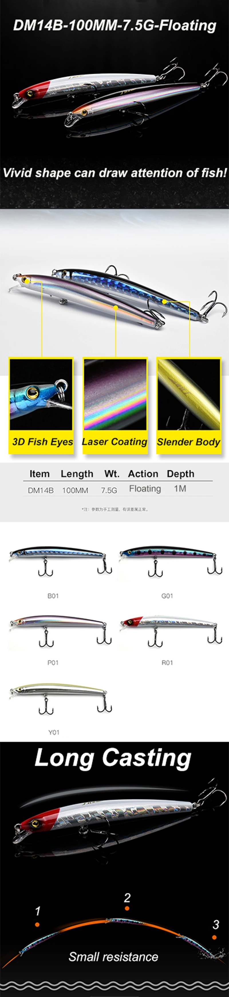 LUTAC Minnow-anzuelo de pesca flotante, anzuelo de pesca de alta calidad, 100mm, 7,5g, 5 colores, 1m, 3D