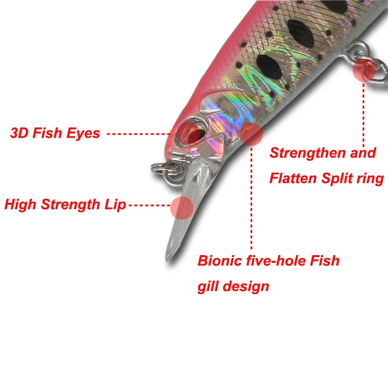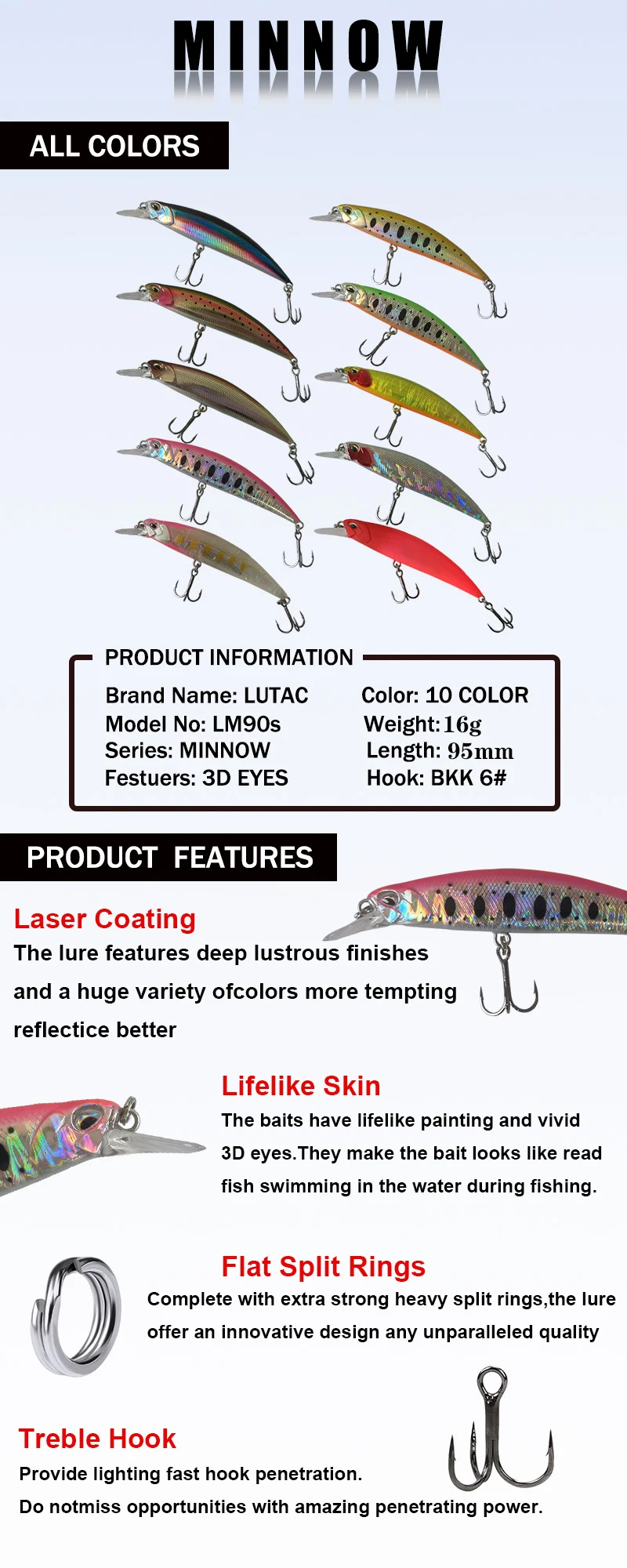 Lutac Minnow BKK Anzuelos Ojos 3D Agua que se hunde 95mm 16G Señuelo de plástico duro Pesca Cebo duro artificial