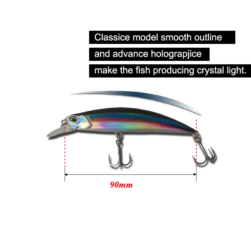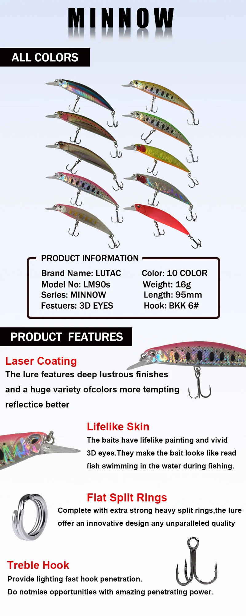 LUTAC Minnow gancho de pesca de fundición superlarga, 95mm, 16g, BKK