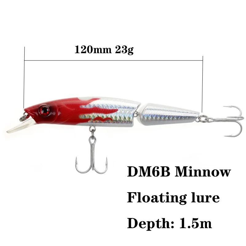 LUTAC Minnow-señuelo de pesca duro, anzuelo de doble sección, 120mm, 23g, flotante, 1,5 m, 3D