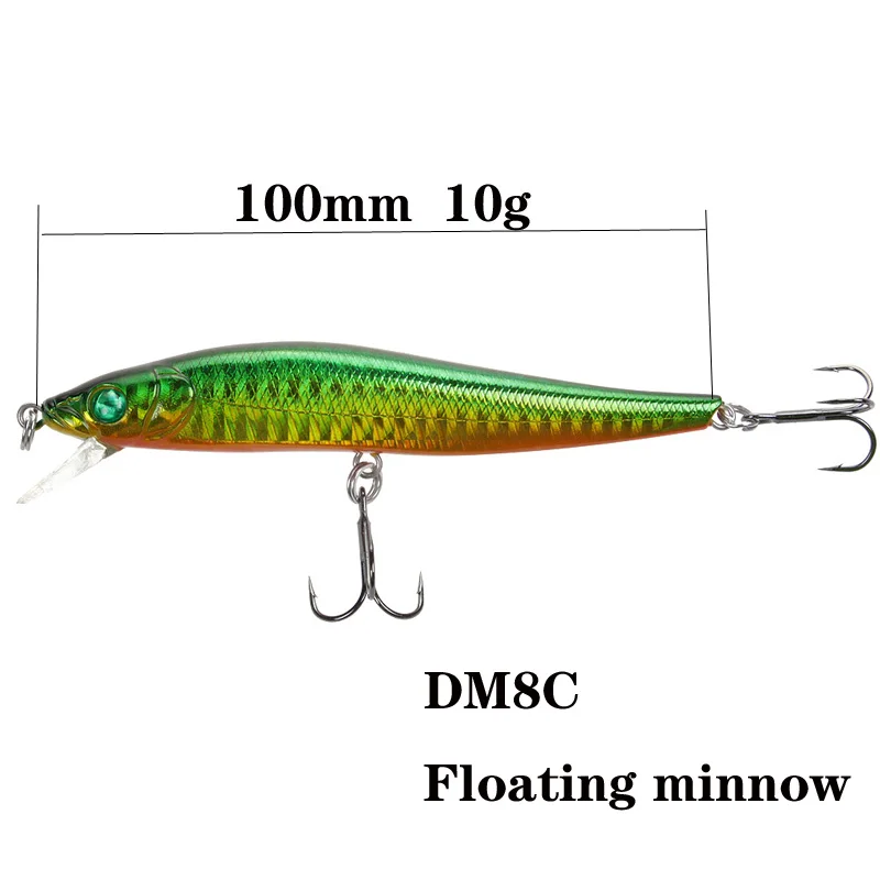 LUTAC Minnow-señuelo de pesca duro, anzuelo flotante de 100m, 0,5mm, 10g, 6 colores