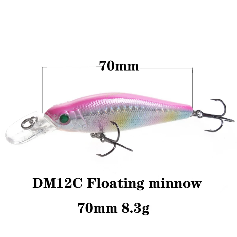 LUTAC Minnow-señuelo de pesca duro, anzuelo flotante de 70mm, 8,3g, 1,0 m, 3D