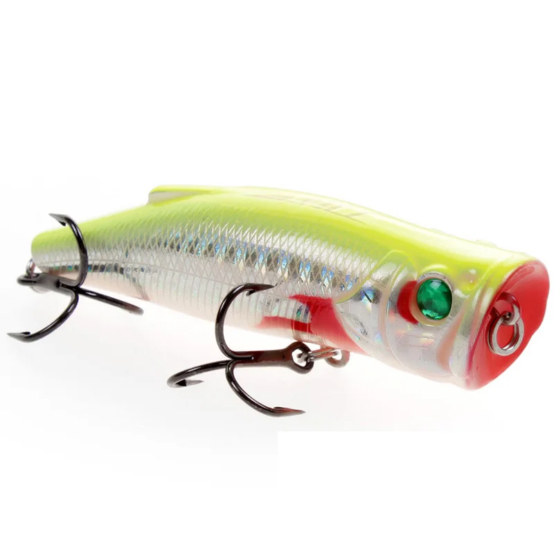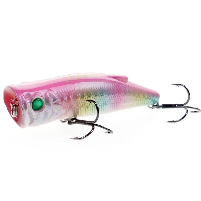 LUTAC Popper-anzuelo de pesca flotante, señuelo duro de ojo de pez 3D de alta calidad, 70mm, 10g, 5 colores