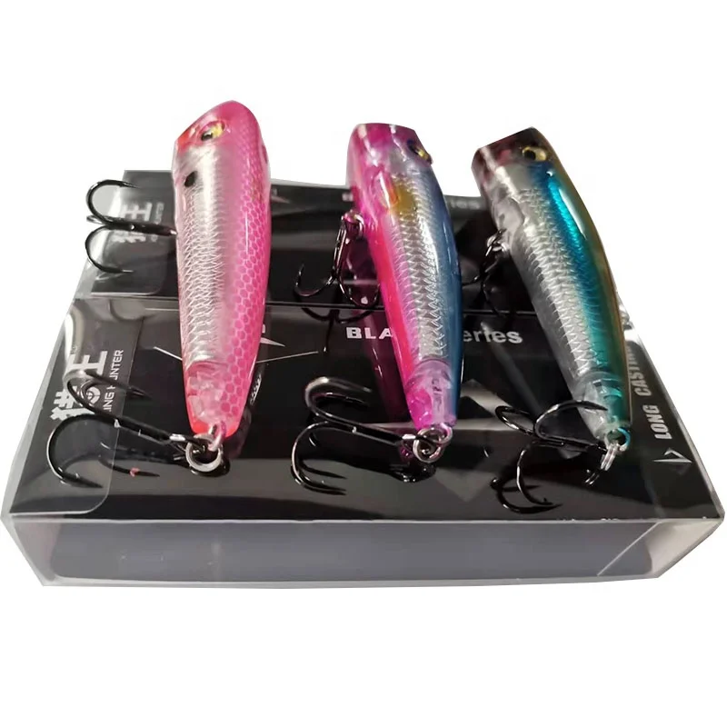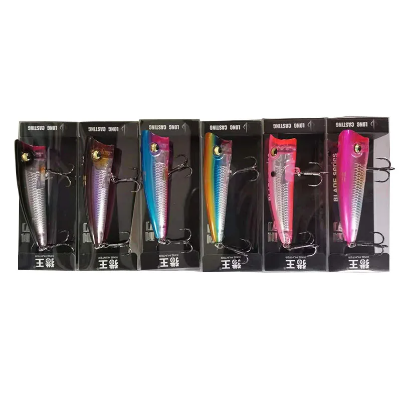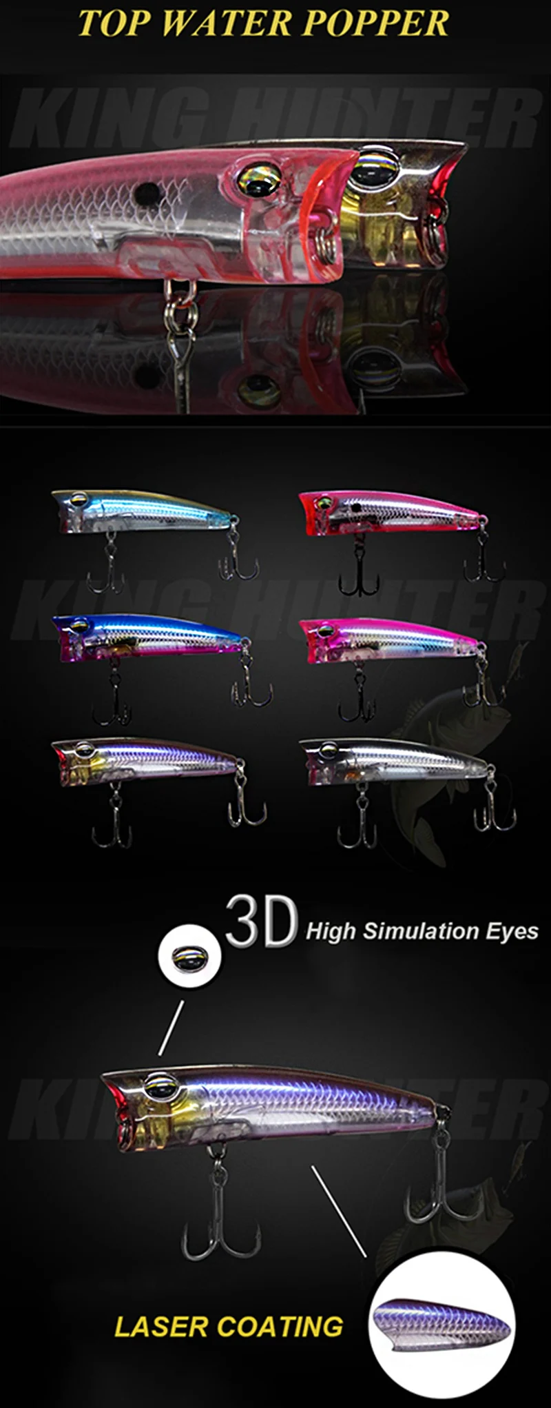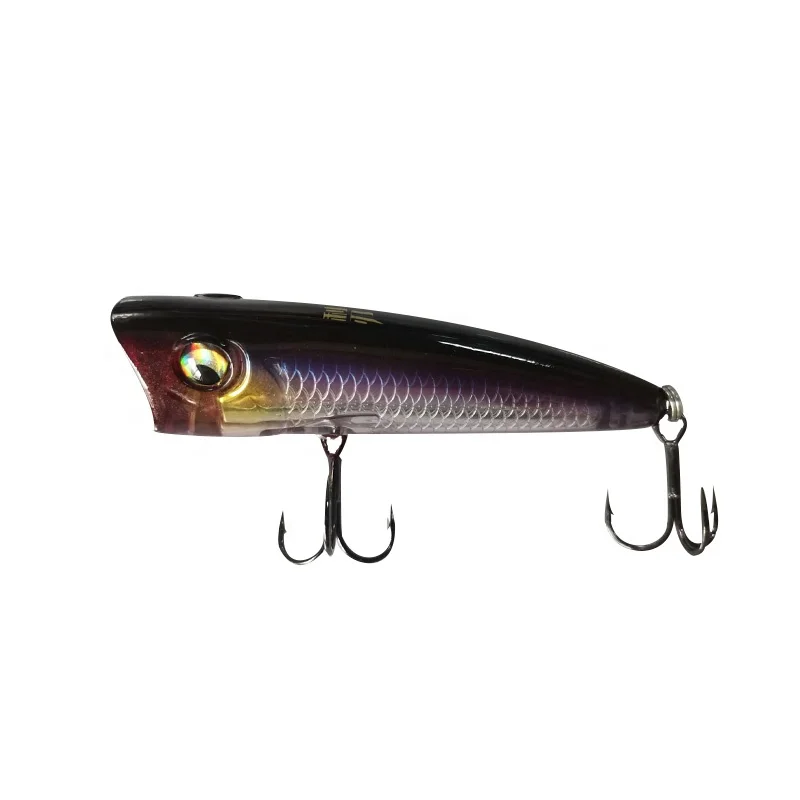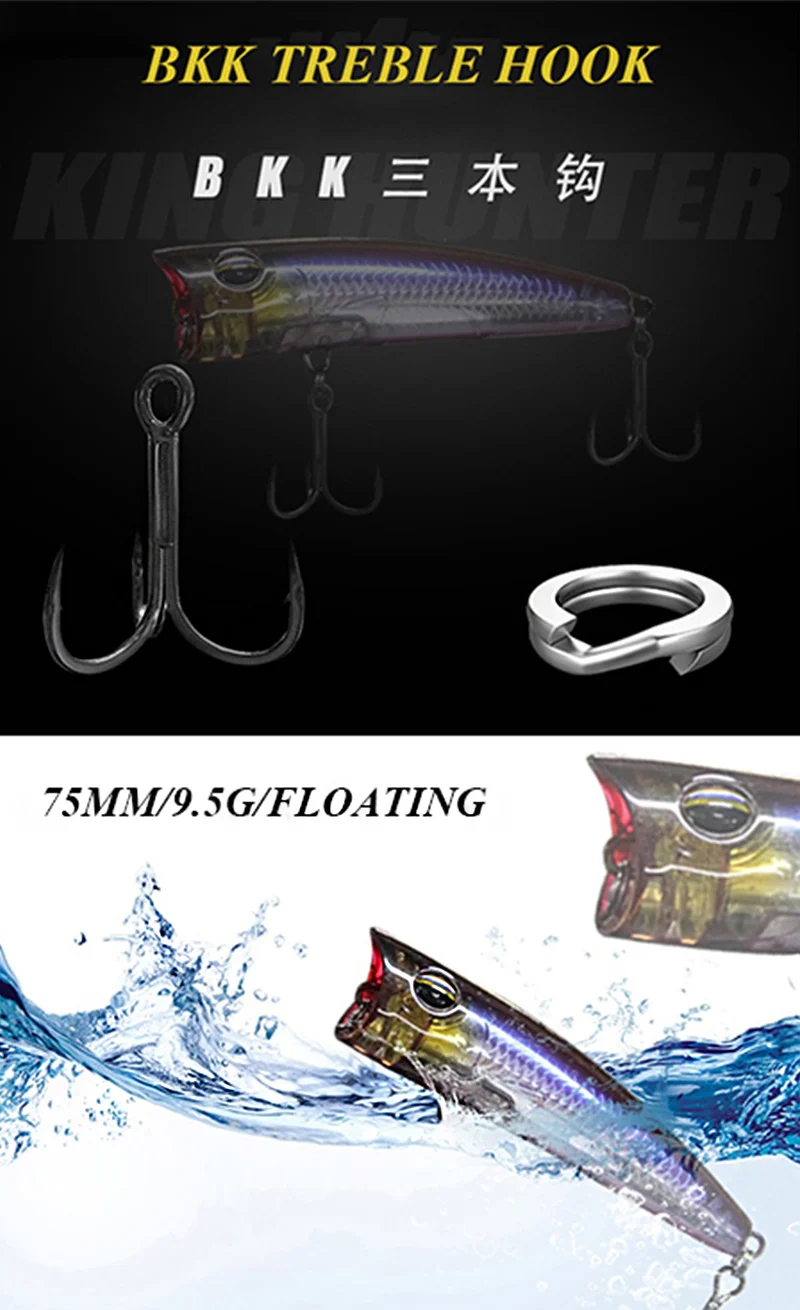 LUTAC Popper-SEÑUELOS de pesca con anzuelo, 75mm, 9,5g, ojos 3D, Topwater